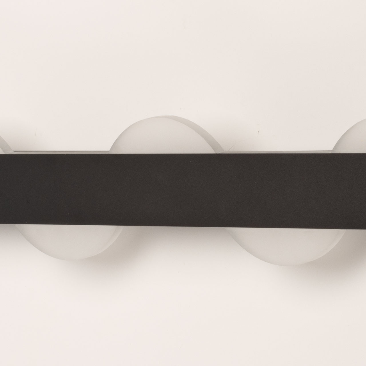 Металлическое основание потолочного светильника окрашено в черный цвет. Светодиодные источники света закрыты матовым акрилом. Светильник декорирован элементами из матового акрила.