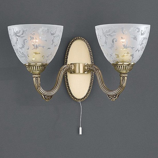 Бра Reccagni Angelo A 6252/2 Итальянского производсва – уникальное сочетание высокого качества и удивительных фактур. Этот светильник Классического стиля хорошо подойдет Для гостиной и придаст помещению мягкий и приятный свет. Плафоны белые из стекла. Арматура бронза из металла. Кол-во ламп - 2шт. Общая мощность 120W