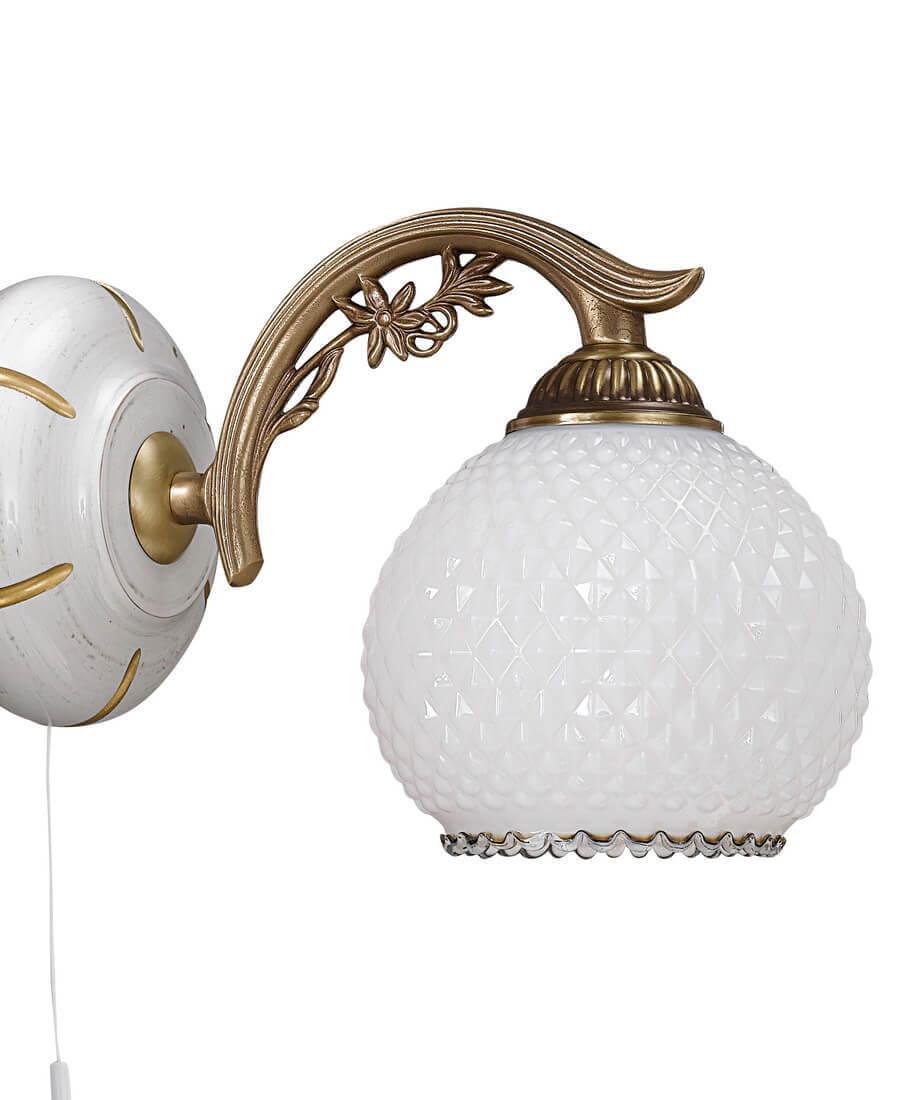 Бра Reccagni Angelo A 8605/1 Итальянского производсва – уникальное сочетание высокого качества и удивительных фактур. Этот светильник Классического стиля хорошо подойдет Для гостиной и придаст помещению мягкий и приятный свет. Плафоны белые из стекла. Арматура бронза из металла. Кол-во ламп - 1шт. Общая мощность 60W