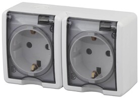 Розетка двойная влагозащищенная с заземлением с защитной крышкой и шторками Werkel серебряный W1172206 4690389178085
