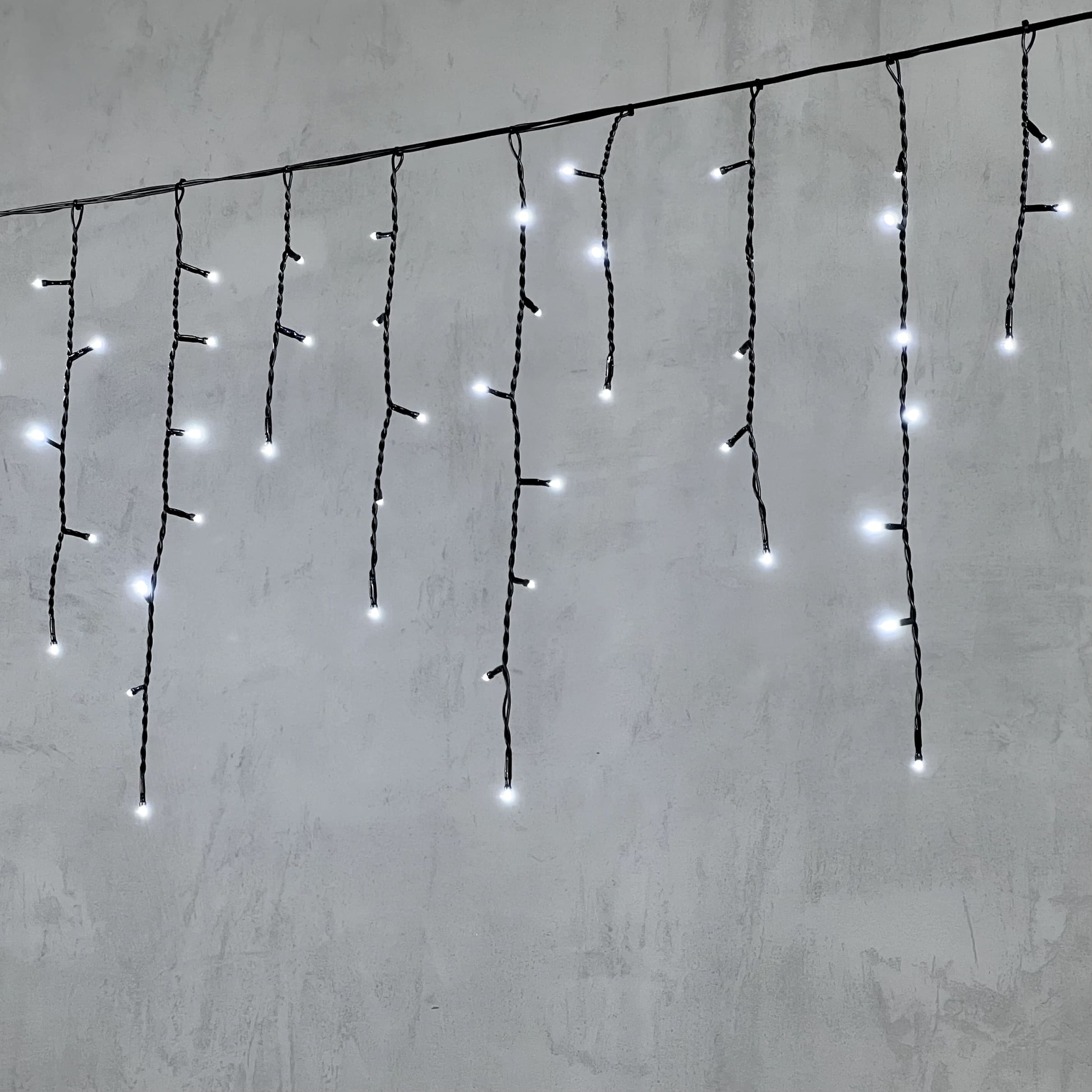 Гирлянда Бахрома 3, 1 x 0, 5 м Белая с Мерцанием Белого Диода 220В, 150 LED, Провод Черный ПВХ, IP54 LTC PIL150BLW-11-2W в Краснодаре