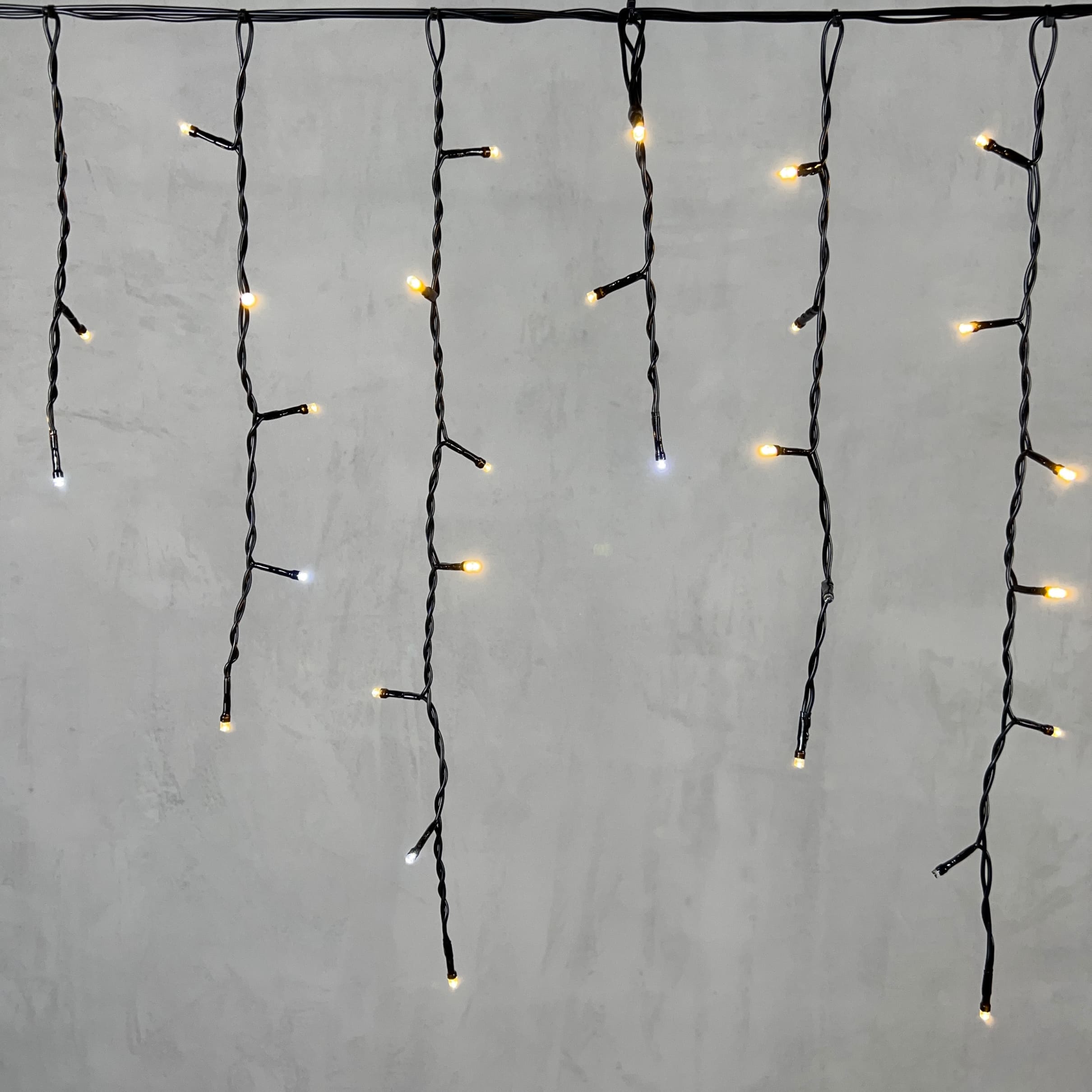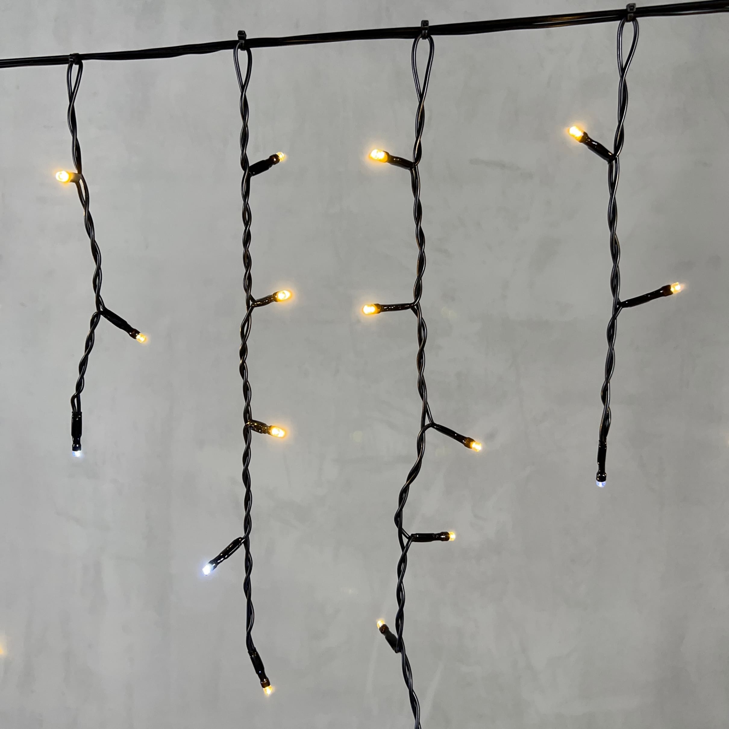 Гирлянда Бахрома 3, 1 x 0, 5 м Тепло-Белая с Мерцанием Белого Диода 220В, 150 LED, Провод Черный ПВХ, IP54 LTC PIL150BLW-11-2WW в Краснодаре