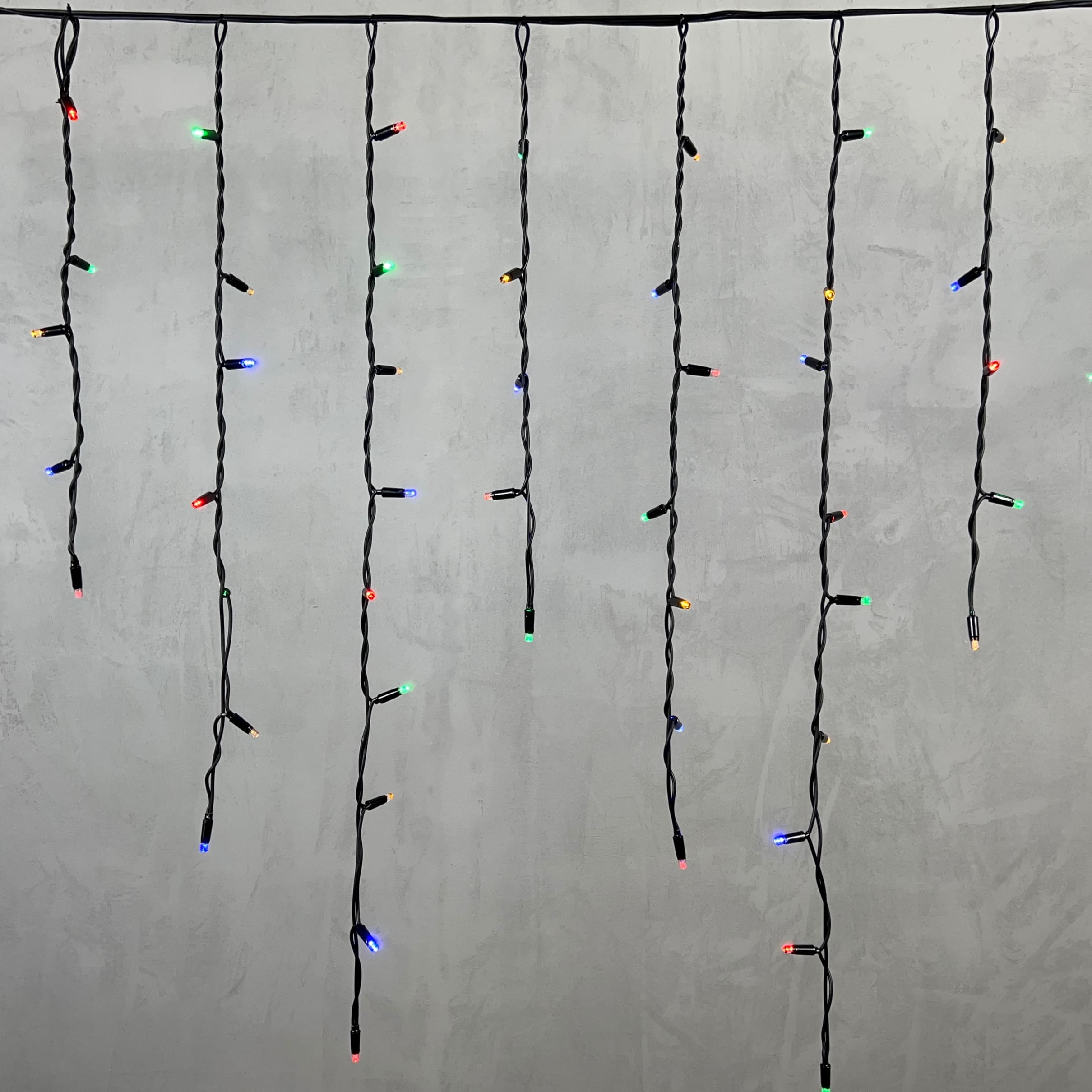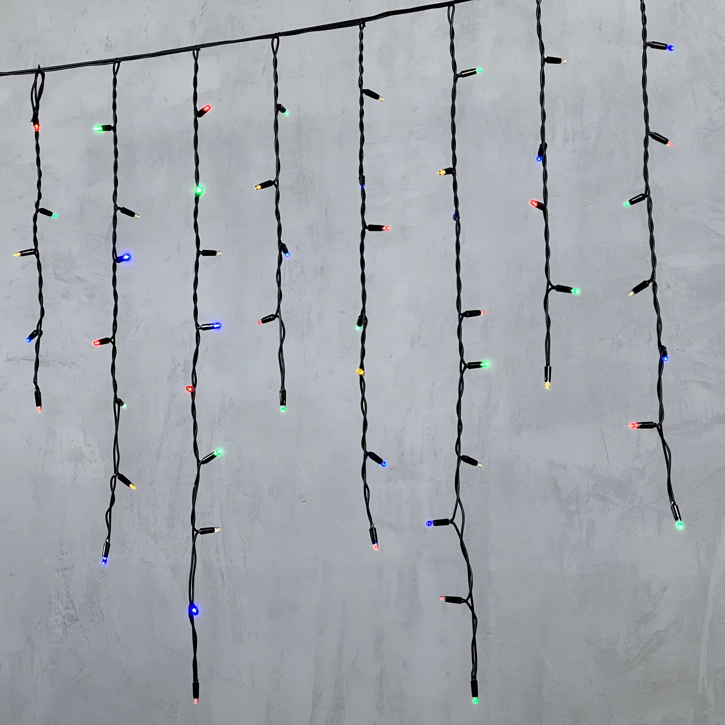 Гирлянда Бахрома 3, 2 x 0, 9 м Разноцветная 220В, 168 LED, Провод Черный Каучук, IP65 LTC LL168-1-2M в Краснодаре