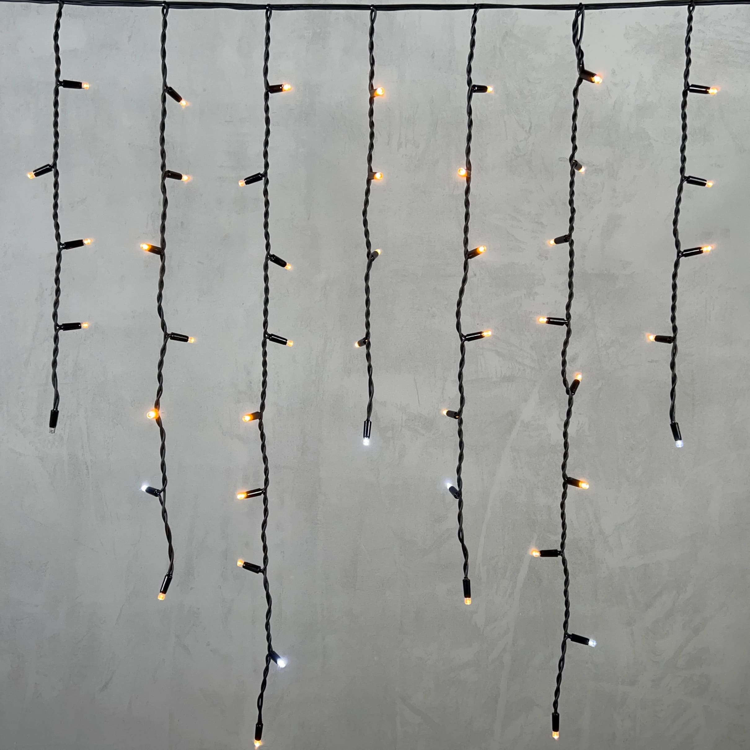 Купить "Гирлянда Бахрома 3,2 x 0,9 м Экстра Тепло-Белая с Мерцанием Белого Диода 220В, 168 LED, Провод Черный Каучук, IP65 LTC LL168BLW-1-2EWW"