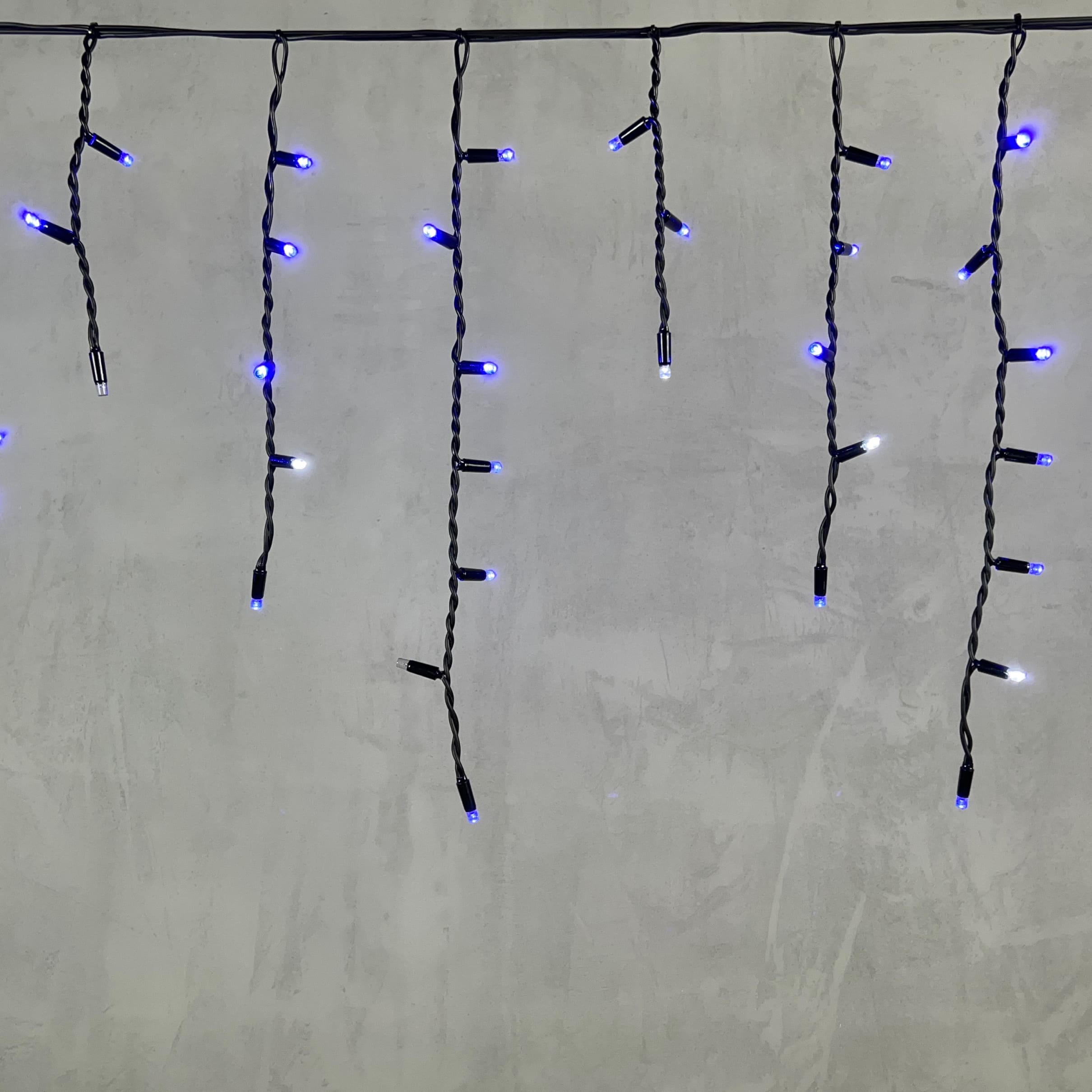 Гирлянда Бахрома 3, 1 x 0, 5 м Синяя с Мерцанием Белого Диода 220В, 120 LED, Провод Черный Каучук, IP65 LTC LL120BLW-1-2B в Краснодаре
