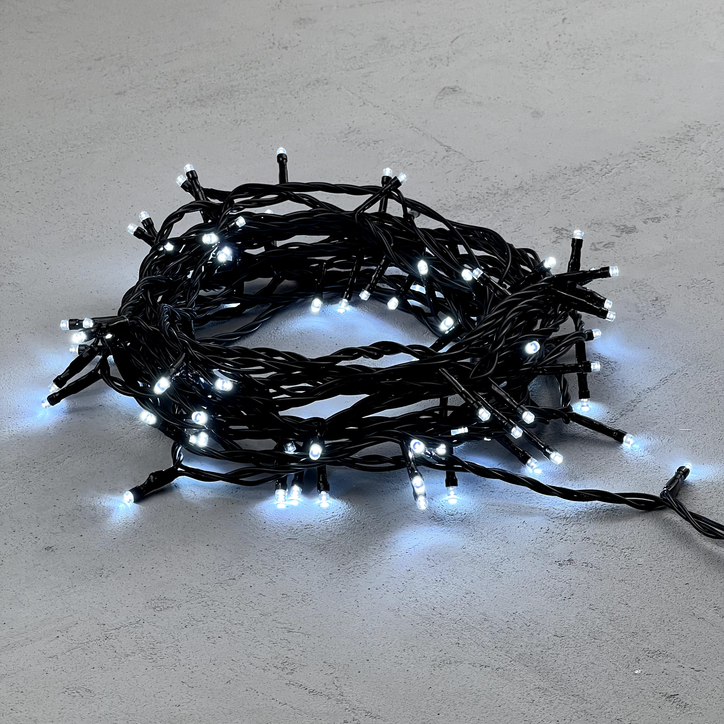 Гирлянда Нить 10м Белая 220В, 100 LED, Провод Черный ПВХ, IP54 LTC PST100-11-2W в Краснодаре
