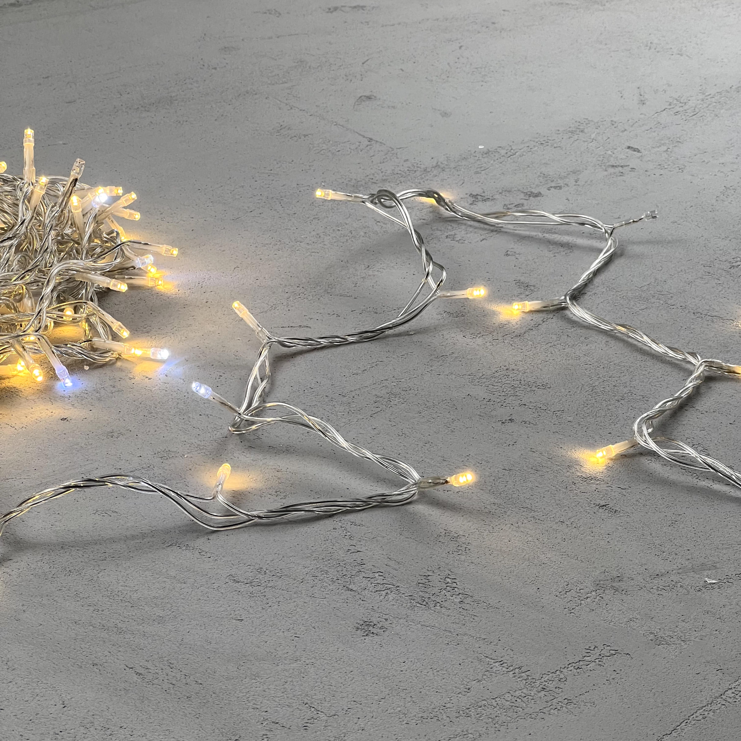 Гирлянда Нить 10м Тепло-Белая с Мерцанием Белого Диода 24В, 100 LED, Провод Прозрачный ПВХ, IP54 LTC PST100BLW-10-1WW в Краснодаре