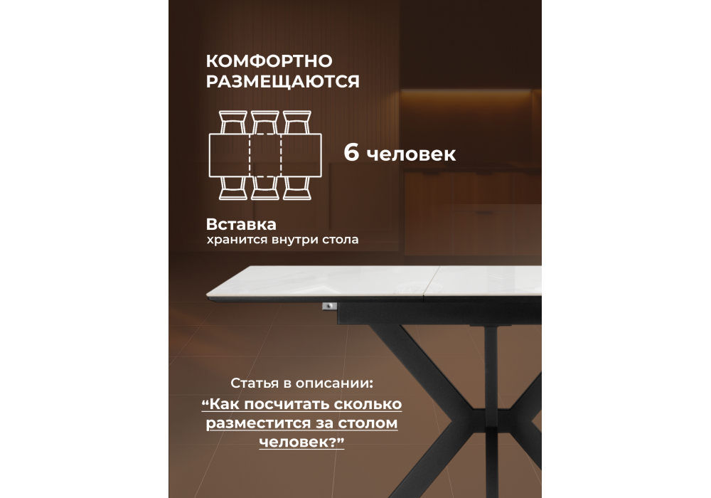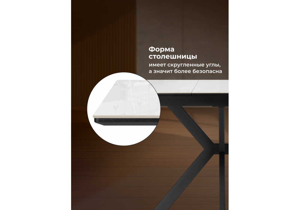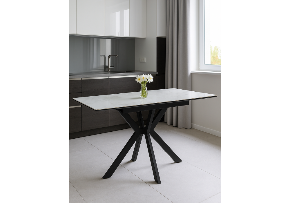 Материал каркаса - металл; Материал столешницы - Керамика; Ширина - 70; Высота - 76; Длина стола в разложенном виде - 130; Длина - 100;