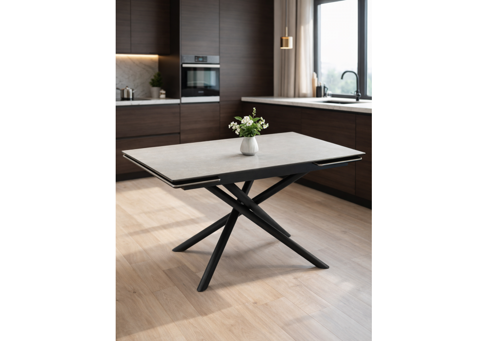 Материал каркаса - металл; Материал столешницы - Керамика; Цвет ножек - черный; Ширина - 80; Высота - 75; Длина стола в разложенном виде - 200; Длина - 140;