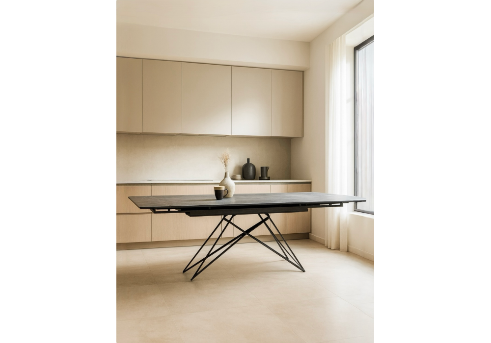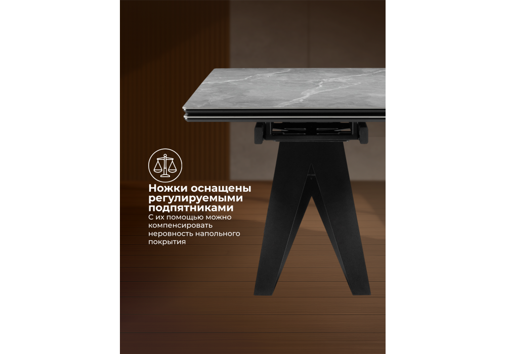 Керамический стол раздвижной Woodville Блэкберн 140(200)х80 серый мрамор larka grey / черный 625933 в Краснодаре