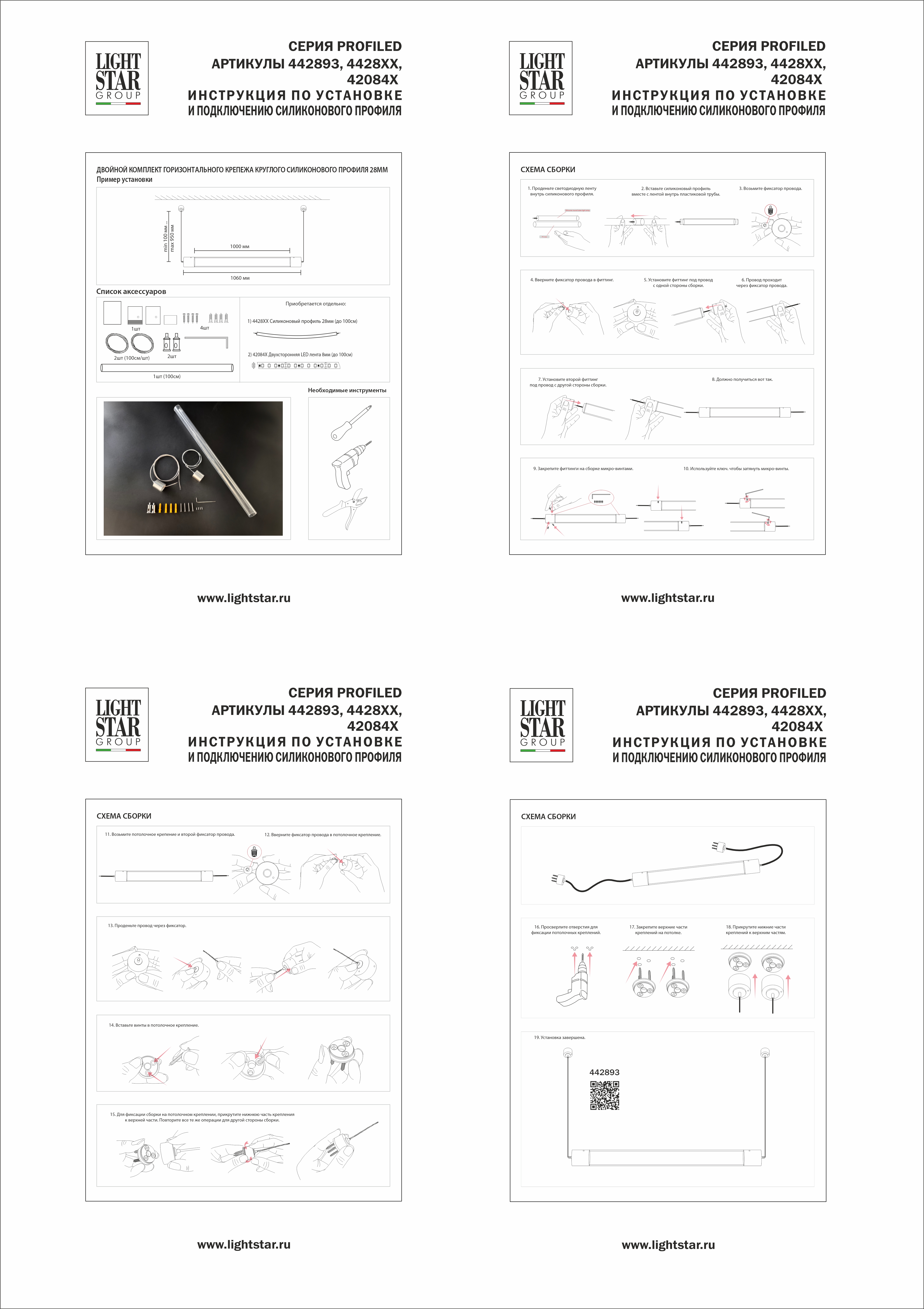 Комплект подвесного гориз крепежа двойной с трубкой Lightstar Profiled 442893 в Краснодаре