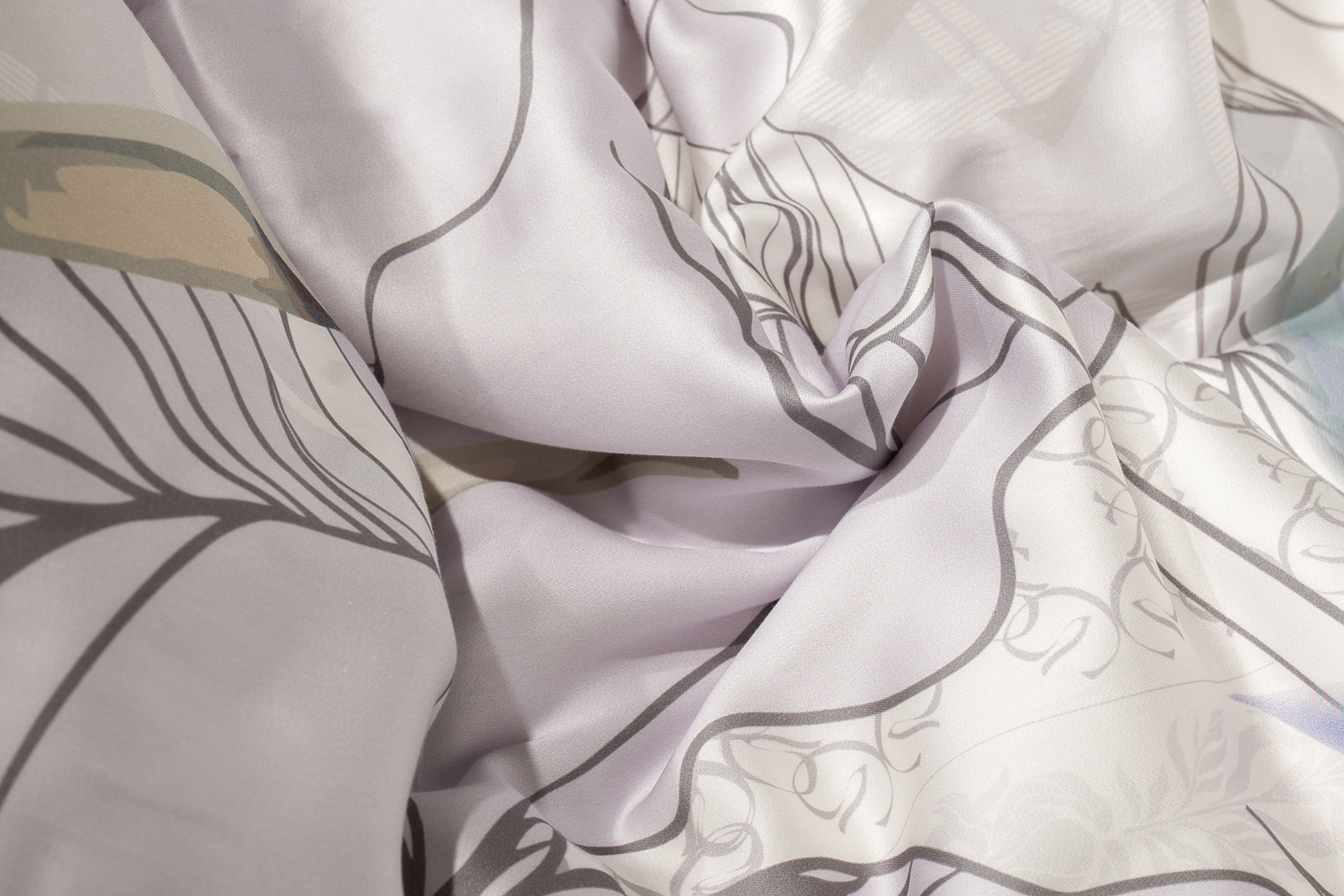 Комплект сшит из 100% ткани тенсель. Ткань мягкая, немного блестящая, как шелк, но при этом – не скользкая.