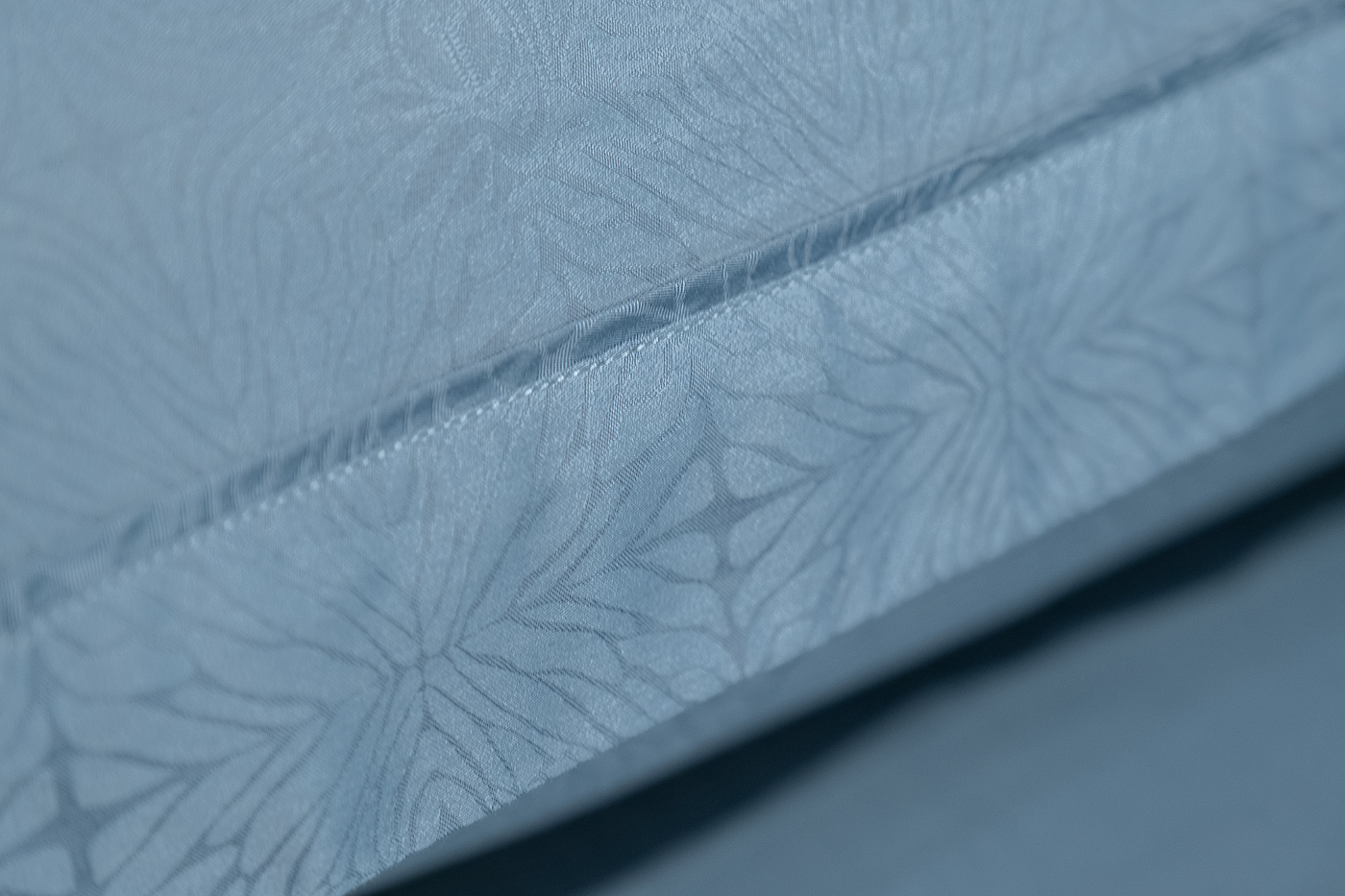 Комплект «Муар» изготовлен из приятного на ощупь 100% бамбукового волокна, которое идеально подходит для людей с чувствительной кожей. Белье из бамбуковых волокон гигроскопично, пропускает воздух, тактильно приятно. Жаккардовое белье пастельных оттенков будет идеально смотреться как в традиционном, так и в современном интерьере. Пошив в коллекции Муар, цвет сине-зеленый, представлен одним из самых распространенных способов украсить постельное белье: С 4х сторон, по периметру пододеяльника и оксфордских наволочек делается отстрочка с плоским кантом в цвет основы, формирующая бордюр шириной 4см. В данный комплект входят: Пододеяльник 145*210, наволочка 50*70-2шт и простыня 240*250. Уход: Машинная стирка при максимальной температуре 40С, мягкий режим. Стирать моющими средствами для цветных тканей. Не отбеливать. Барабанная сушка возможна, обычная температура. Гладить с изнаночной стороны при максимальной температуре утюга. Сухая химчистка запрещена.