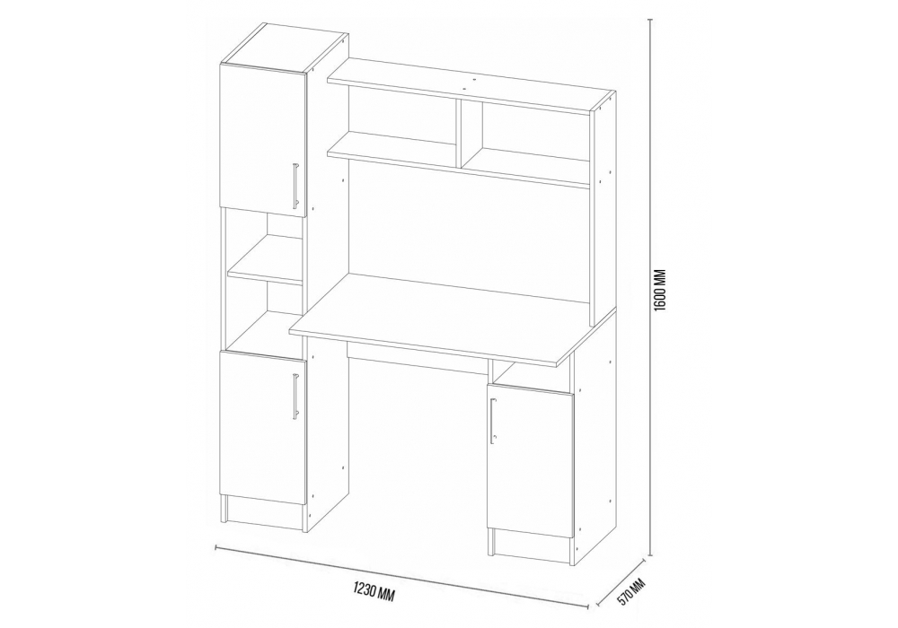 Материал каркаса - ЛДСП; Материал столешницы - ЛДСП; Цвет каркаса - Белый / дуб вотан; Цвет столешницы - Дуб вотан; Ширина - 57; Высота - 160; Длина - 123;
