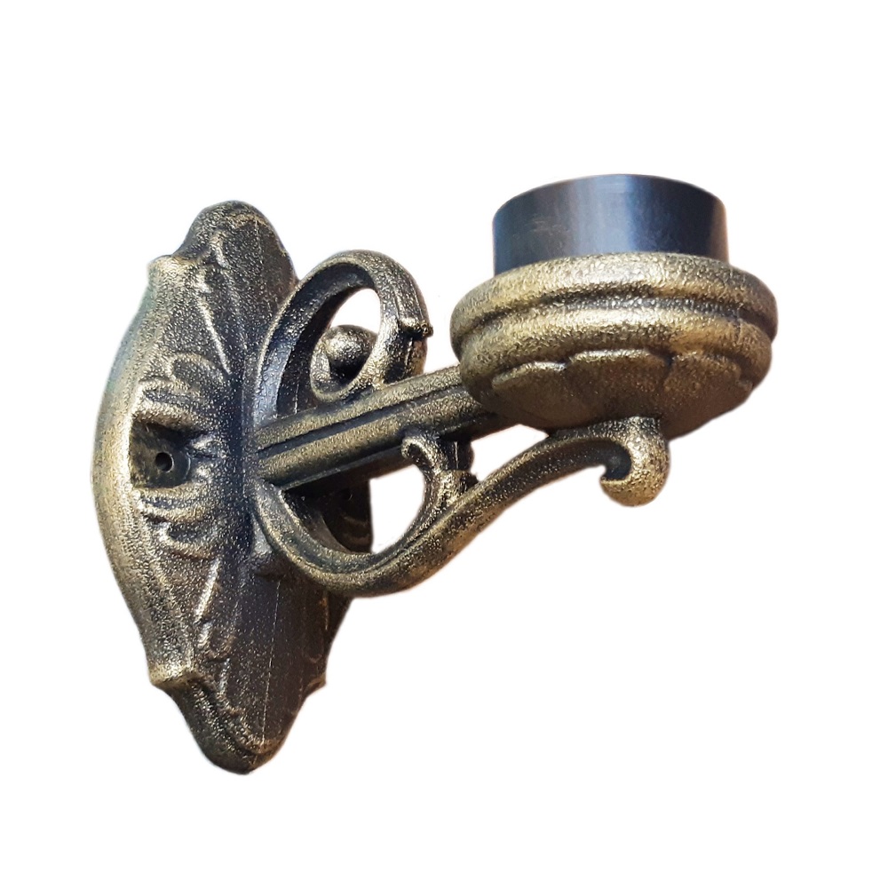 Консоль паркового фонаря на стену FUMAGALLI серии BISSO, модель BISSO WALL. Классическая консоль малого размера для парковых светильников малой и средней серии. Монтаж на стену в положение "вверх" и "вниз" с помощью штатного комплекта крепежа. Посадочный диаметр для светильника - 60 мм, фиксация с помощью стопорного винта или декоративной гайки (колпачка). Дизайн классический, имитация чугунного литья или ковки. Изготовлена по технологии FUMATECH, с использованием материалов с разными физическими свойствами. В центре изделия расположена стальная, оцинкованная с двух сторон трубка, (внутри проходят провода), которая придает дополнительную прочность и жесткость конструкции. С внешней стороны используется сверхпрочный технологичный полимерный материал RESIN, который защищает поверхность от агрессивного воздействия всех атмосферных факторов (покрытие не ржавеет, не выгорает на солнце, не боится солей и реагентов). Не проводит электричество!!! Кронштейн и светильник на ней не требуют заземления и относятся к 2 классу электробезопасности. Срок службы - не менее 20 лет. Температура эксплуатации от -60 до +90. Для установки парковых фонарей на опоры освещения FUMAGALLI можно использовать консоли BISSO SYS (системные), которые собираются в парковый торшер из одного, двух, трех или четырех фонарей.