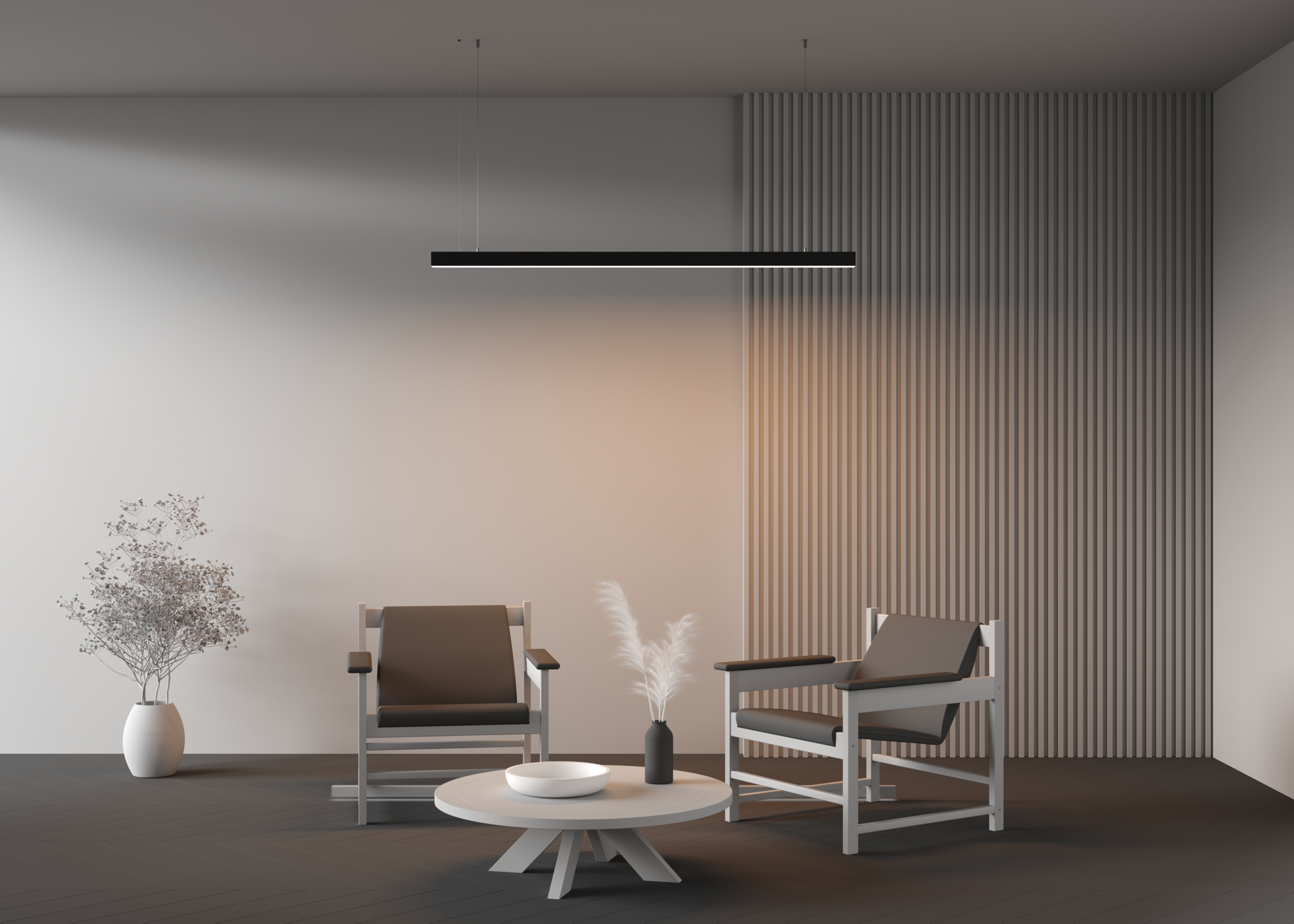 Подвесные линейные светильники?Это несколько изделий с уникальными чертами, в одном стиле и цветовой гамме.