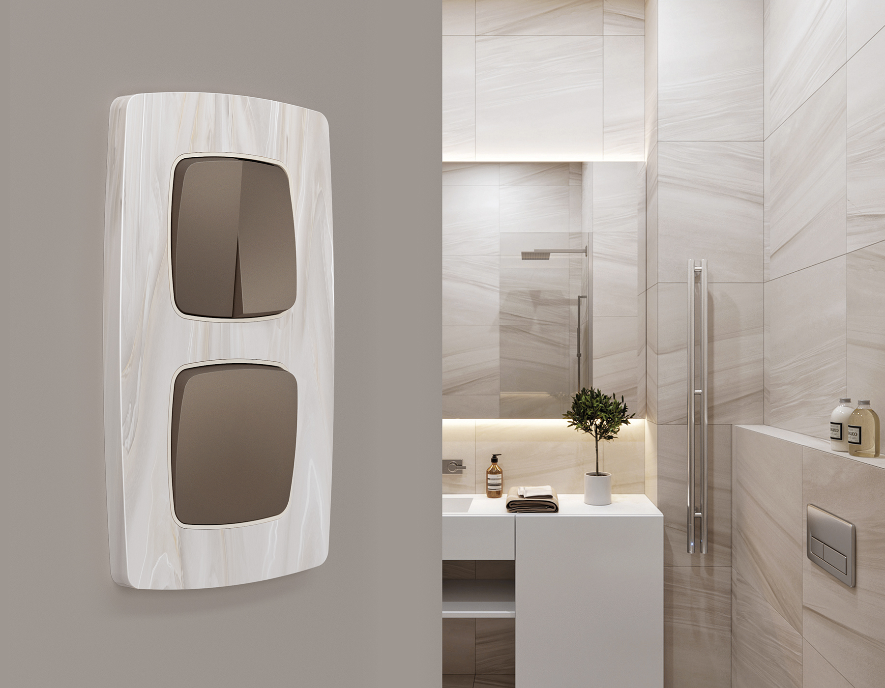 Многогранный ассортимент Ambrella Volt включает в себя механизмы, лицевые панели и рамки, а также комплекты, доступные в различных цветовых решениях. Продукция представлена в модульном исполнении, что позволяет гибко настраивать внешнийвид и функциональность. Вам будет легко заменить лицевую панель, рамку или механизм, найдя идеальное сочетание цветов.