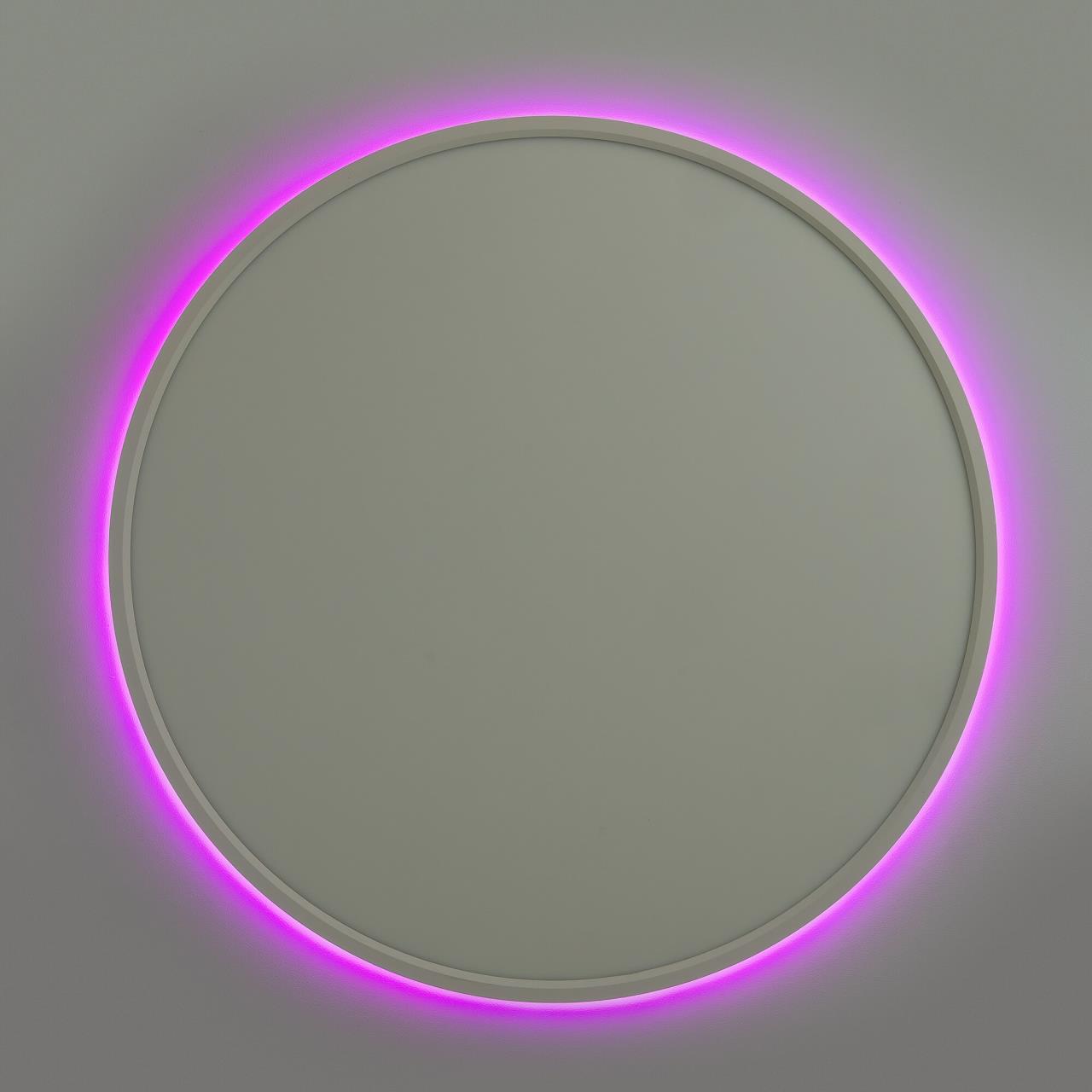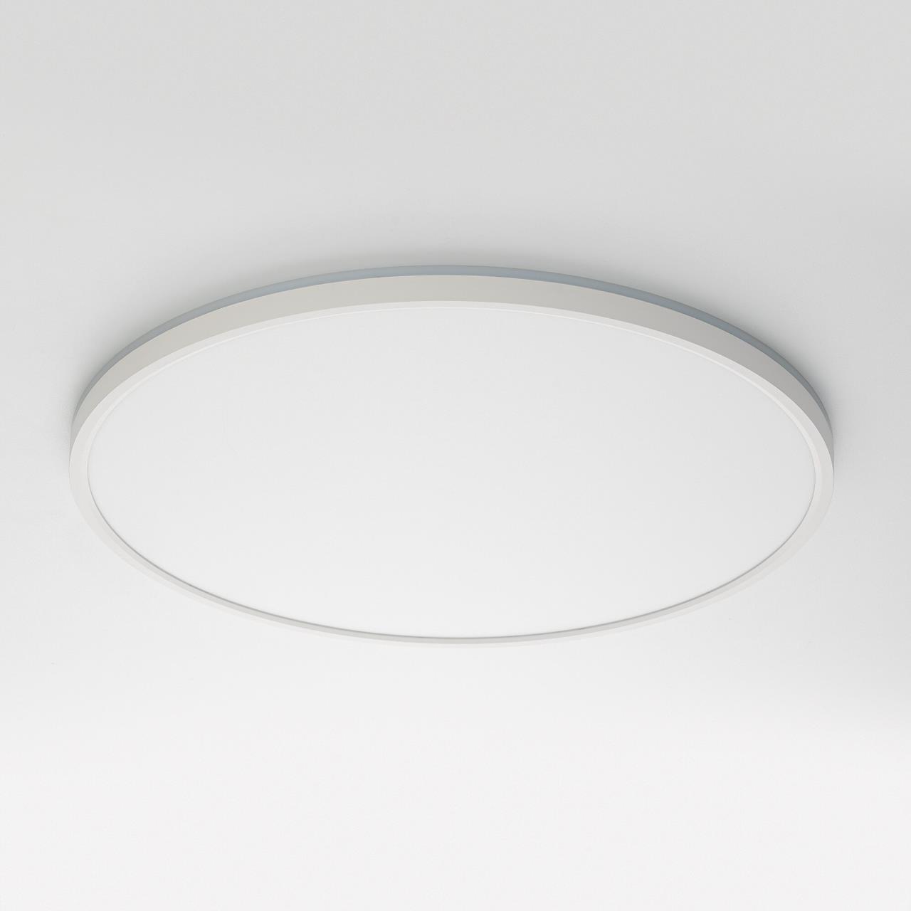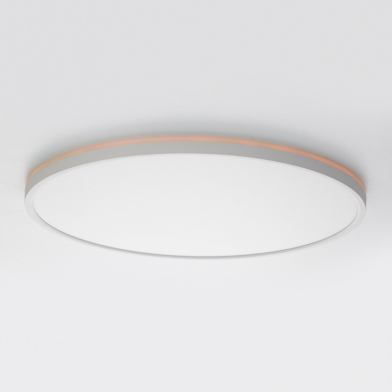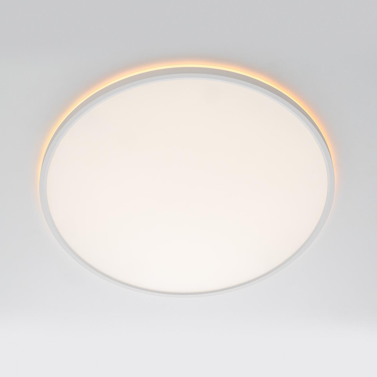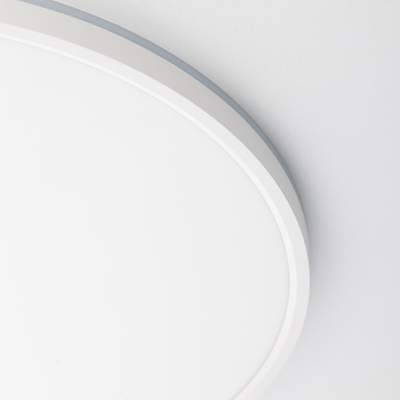 Изделие обладает высокой энергоэффективностью основного света – 120Лм/Вт. Площадь освещения до 25м². Мощность: основной свет - 40Вт, потолочная подсветка – 10Вт. Диаметр 50см, высота 2,5см. Свет безопасный для глаз, без мерцания и пульсаций. Тип крепления – удобная монтажная платформа.