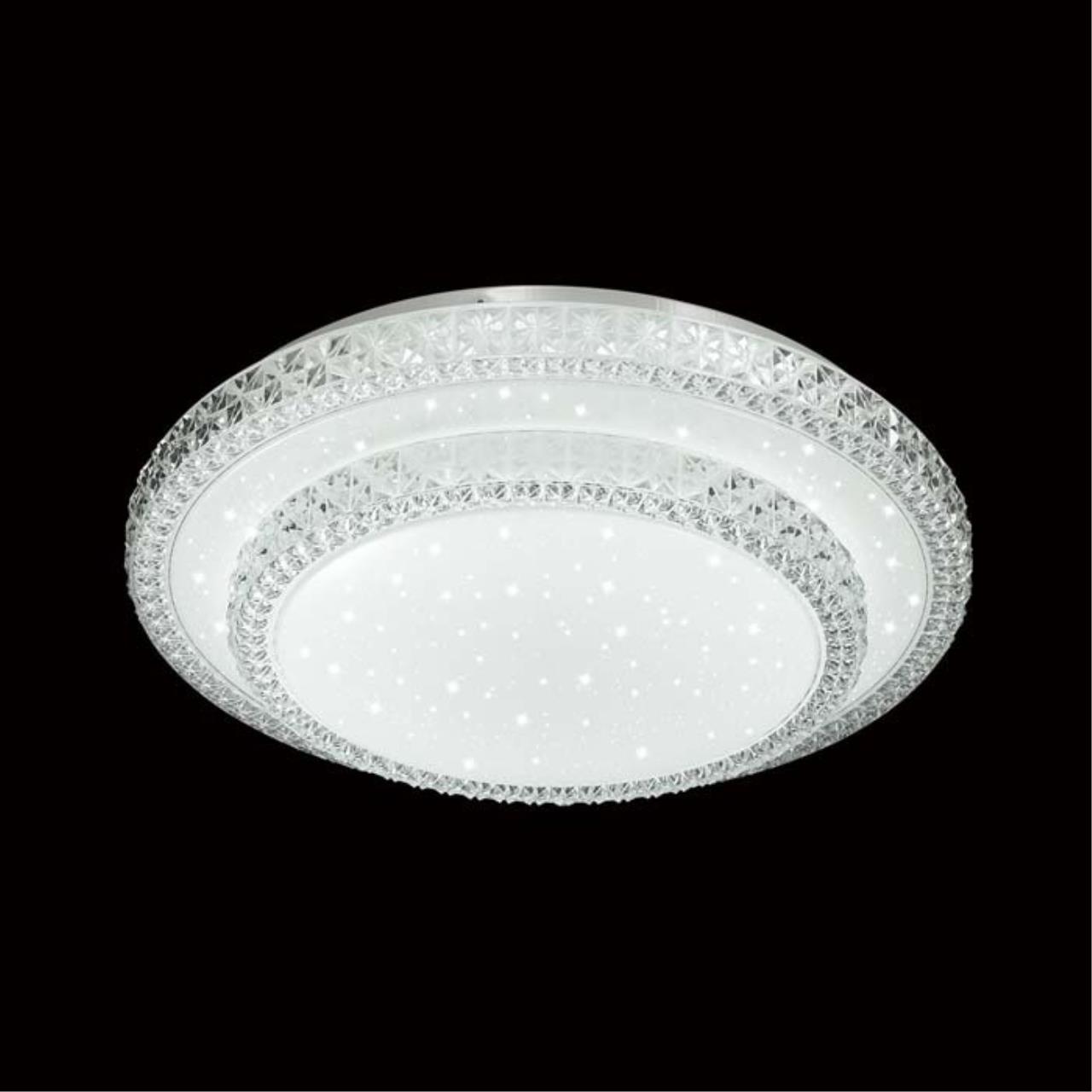 Светильник 2041/ELN линии FLOORS состоит из металлического основания (базы) и пластикового рассеивателя. Материал рассеивателя — высококачественный акрил белого цвета с глянцевой поверхностью, обеспечивающий светильнику равномерное рассеивание и хорошее светопропускание. Форма плафона: круглая, декорирована рельефным, прозрачным ободом с эффектом переливания, а также прозрачными точками, придающими включенному светильнику красивый эффект «звездного мерцания». Степень защиты IP43 позволяет использовать светильник в определенных зонах влажных помещений. В комплект входит LED-модуль с линзами мощностью 76 Вт, соответствующей лампе накаливания 740 Вт, а также переключатель температуры цвета (ССT) на драйвере, с помощью которого осуществляется изменение цветовой температуры 3000/4000/6000 К и переход светильника в режим теплого/белого/холодного света. Для установки необходимого режима рекомендуется использовать удлиненный тонкий предмет типа небольшой отвертки.
