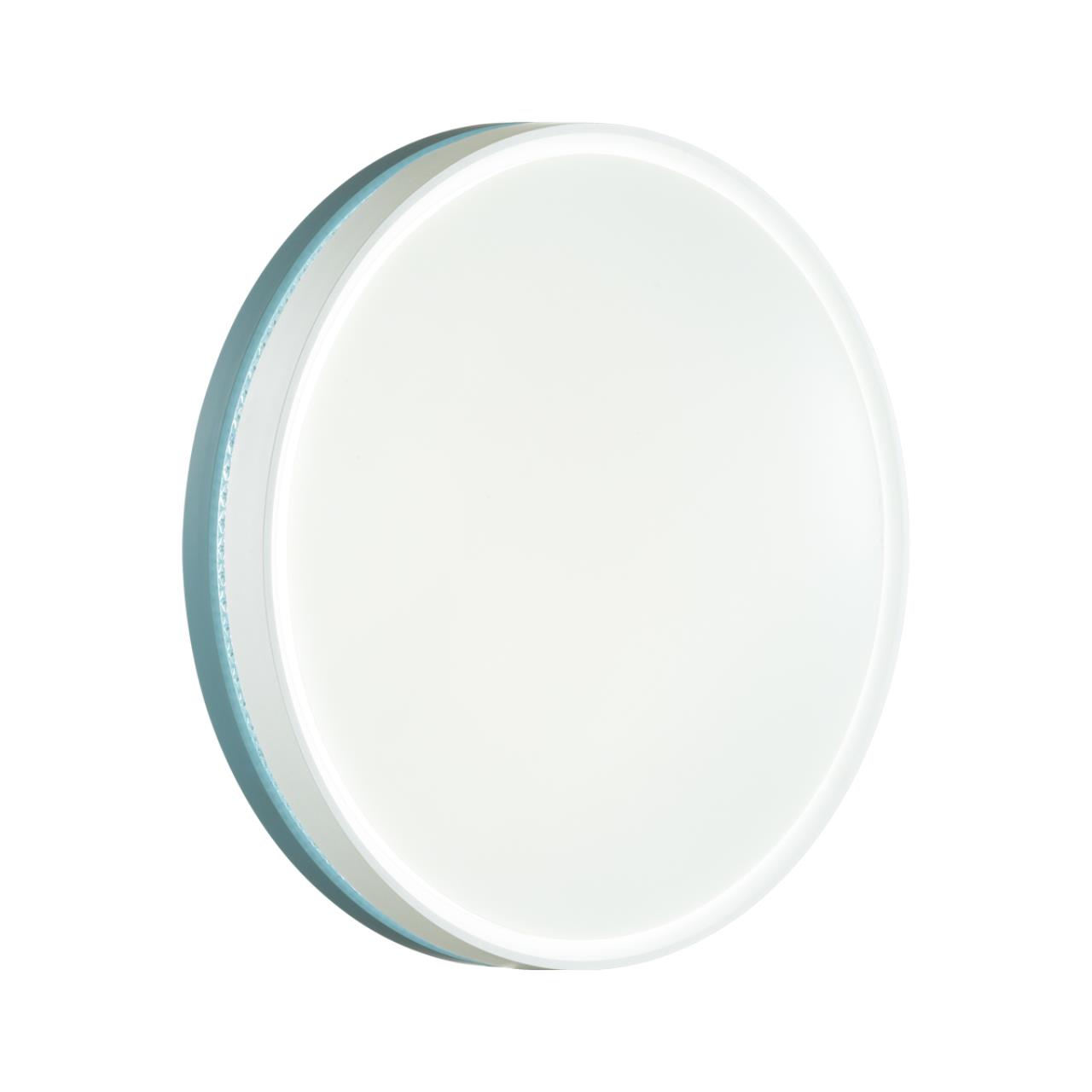 Светильник 7669/DL линии NOHAVA BLUE состоит из металлического основания (базы) и пластикового рассеивателя. Материал рассеивателя - высококачественный пластик марки PMMA 2.0 белого цвета с матовой поверхностью. Пластик обеспечивает светильнику равномерное рассеивание и хорошее светопропускание. Форма плафона: круглая, декорирована ободом из пластика голубого цвета у основания светильники и белого цвета у внешнего края. Обод украшен прозрачной декоративной вставкой "под хрусталь". Степень защиты IP43 позволяет использовать светильник в определенных зонах влажных помещений. В комплект входит заменяемый LED модуль с линзами, мощностью 48Вт, которая соответствует лампе накаливания 460Вт. Источник света имеет комфортную цветовую температуру 4000К (белый свет).