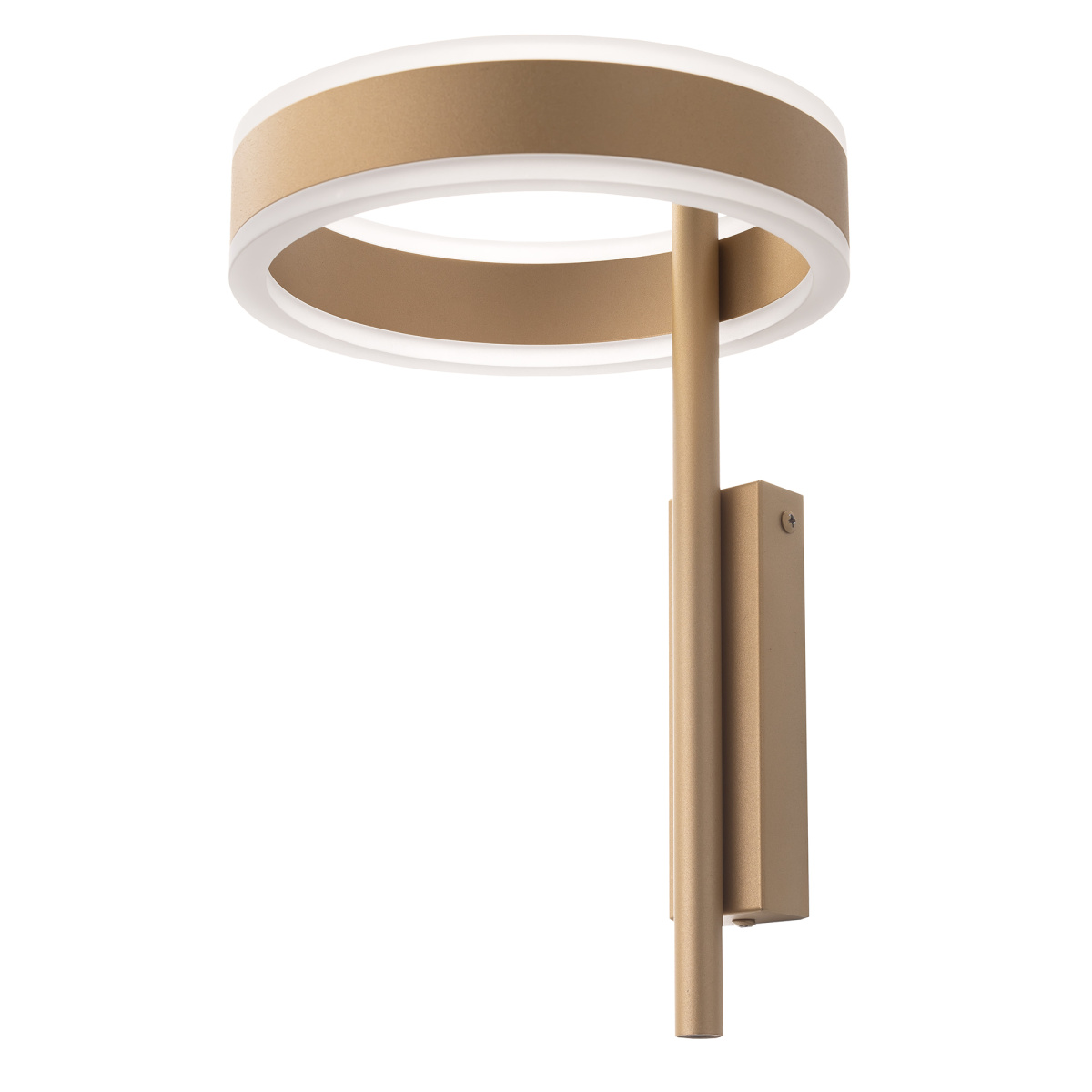 Светодиодный настенный светильник Citilux Дуэт CL719312 является оригинальным представителем современного светодизайна. Корпус светильника металлический, золотого цвета, выполнен в виде кольца размещённом на штанге. Кольцо - светодиодный модуль, изготовлен из алюминиевого профиля благородного золотого цвета, рассеиватель из оптического полимера. Наличие источников света с двух сторон профиля позволяет равномерно осветить всё помещение.