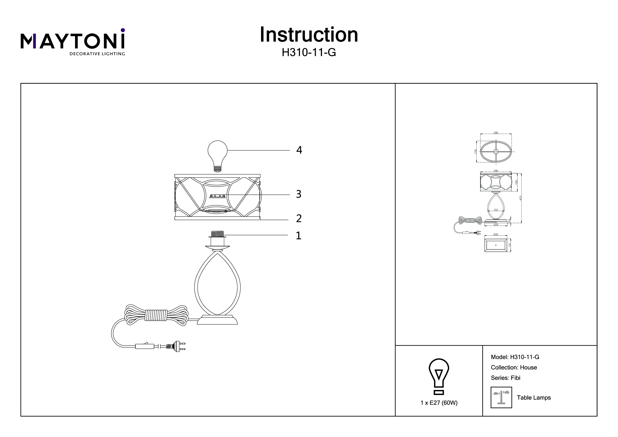 • Количество ламп: 1 шт