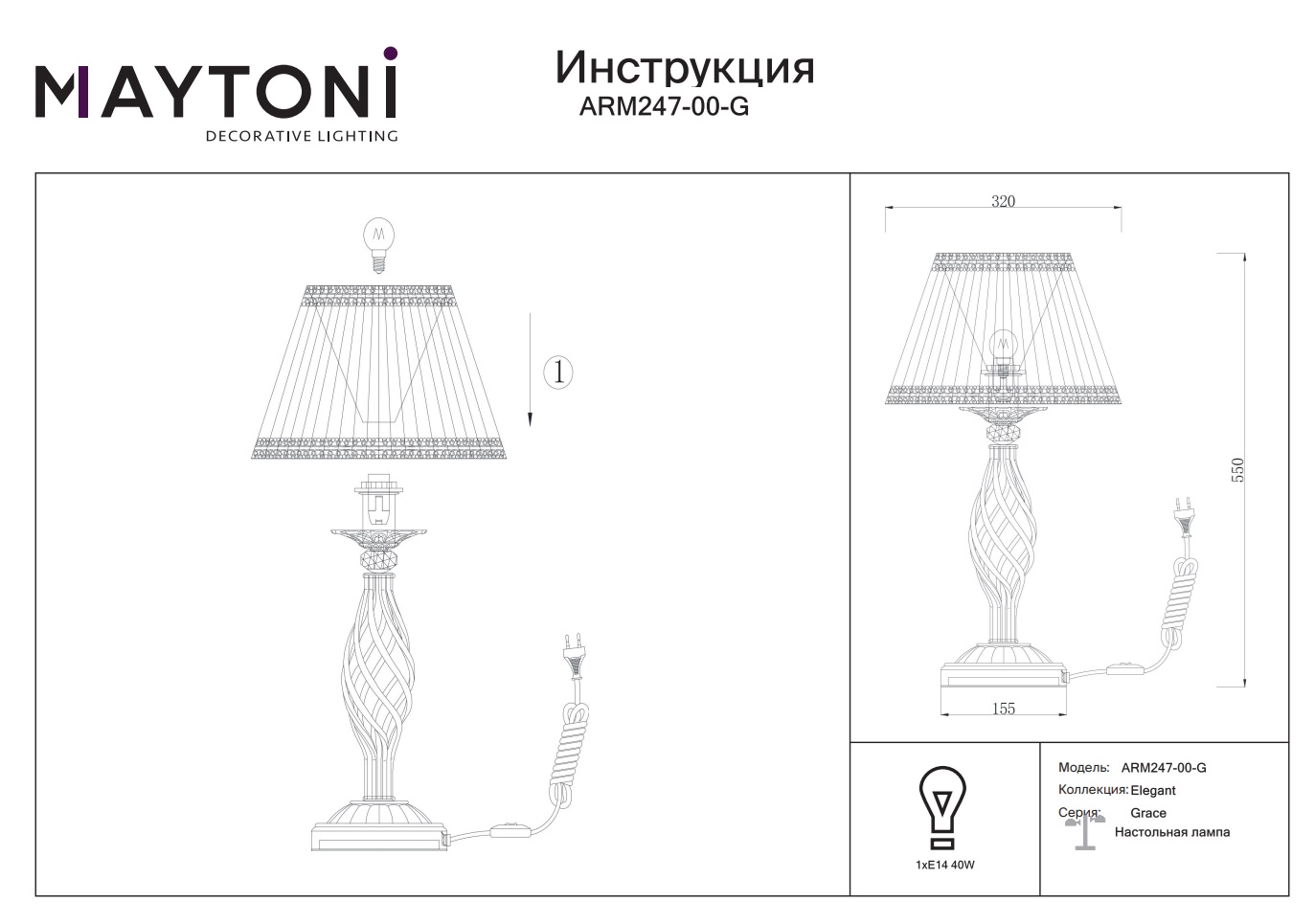Данную модель ARM247-00-G с быстрой доставкой спешите купить по цене 9 993 ₽ в магазине 220svet.ru