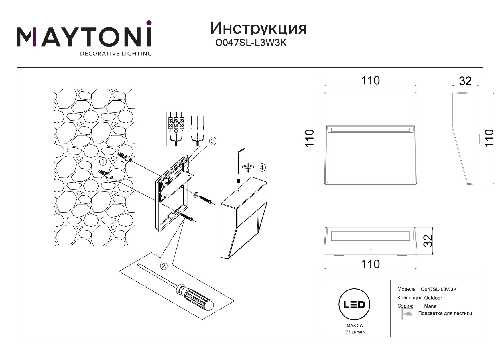 Подсветка для лестниц Maytoni Mane O047SL-L3W3K в Краснодаре