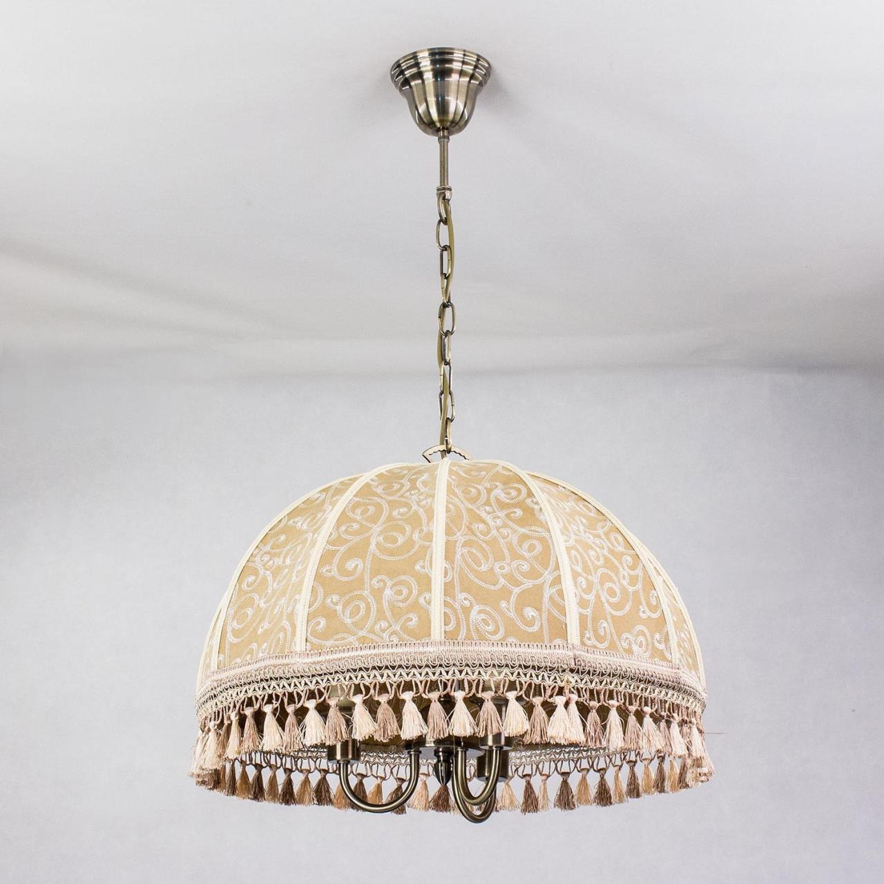 Подвесная трёхрожковая люстра на цепи Citilux Базель CL407135 с классическим абажуром. Корпус светильника металлический, цвет бронза. Абажур тканевый, цвета капучино, украшен изящной вышивкой и декорирован бахромой. Модель подойдёт для освещения уютной гостиной, кухни или веранды в загородном доме или на даче. Поможет создать комфортную атмосферу в кафе и ресторане, великолепно выглядит над столом. Подходит для всех типов потолков, в том числе натяжных, тип крепления – крючок. В изделии используются лампы с цоколем Е14, максимальной мощностью для ламп накаливания 60Вт, светодиодные лампы можно устанавливать более яркие. Высота регулируется от 50 до 135см, диаметр 51см, осветит около 9м².