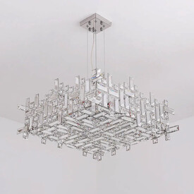 Люстра Delight Collection P7838-W50 chrome с плафоном из множества прямоугольных и квадратных прозрачных кристаллов на металлическом каркасе. Основание из хромированного металла.
