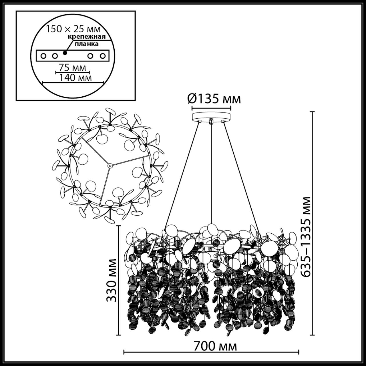 - Цвет плафонов: Прозрачный