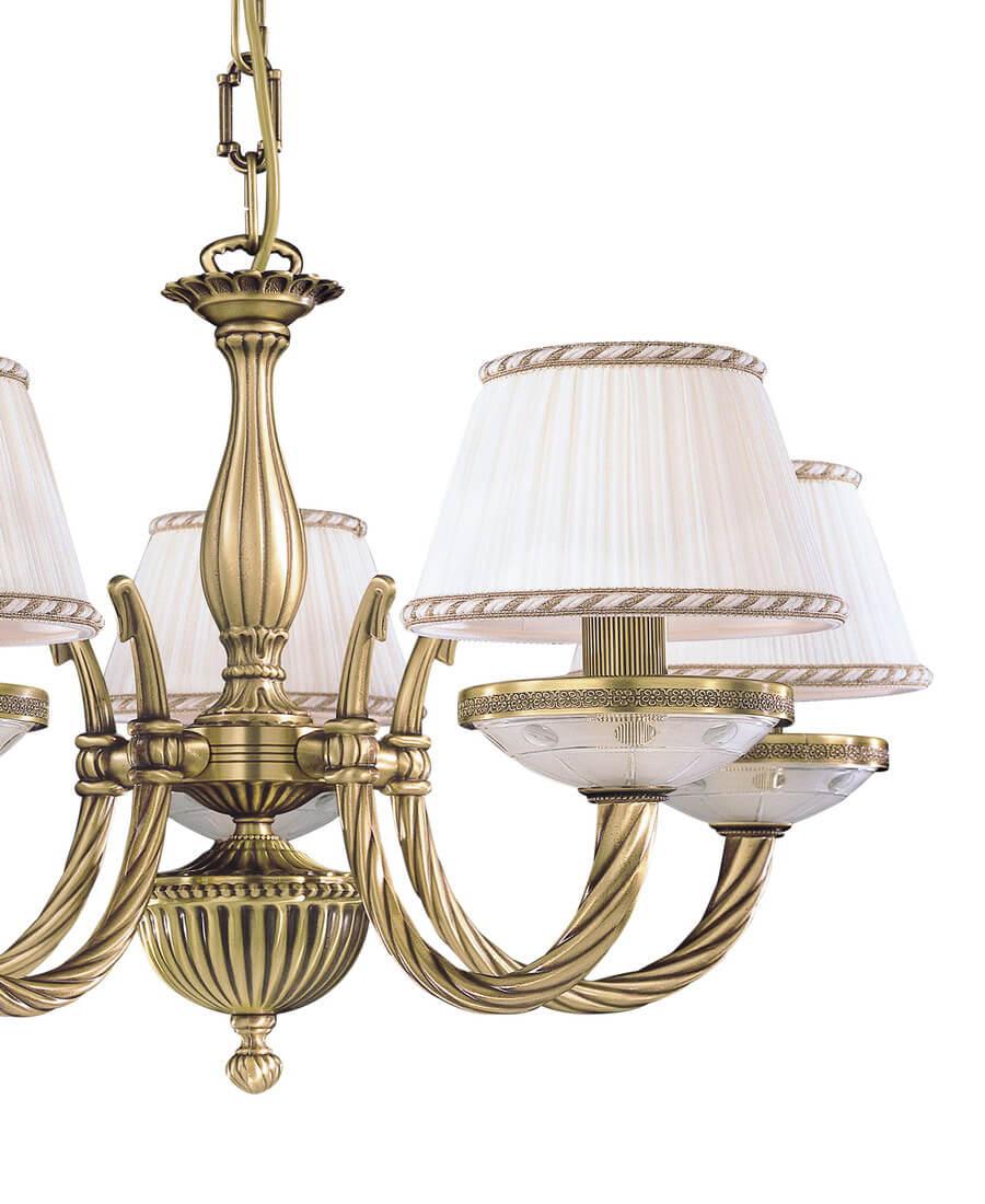 Подвесная люстра Reccagni Angelo L 4660/5 Итальянского производсва – уникальное сочетание высокого качества и удивительных фактур. Этот светильник Классического стиля хорошо подойдет Для гостиной и придаст помещению мягкий и приятный свет. Плафоны белые из ткани. Арматура бронза из металла. Кол-во ламп - 5шт. Общая мощность 300W