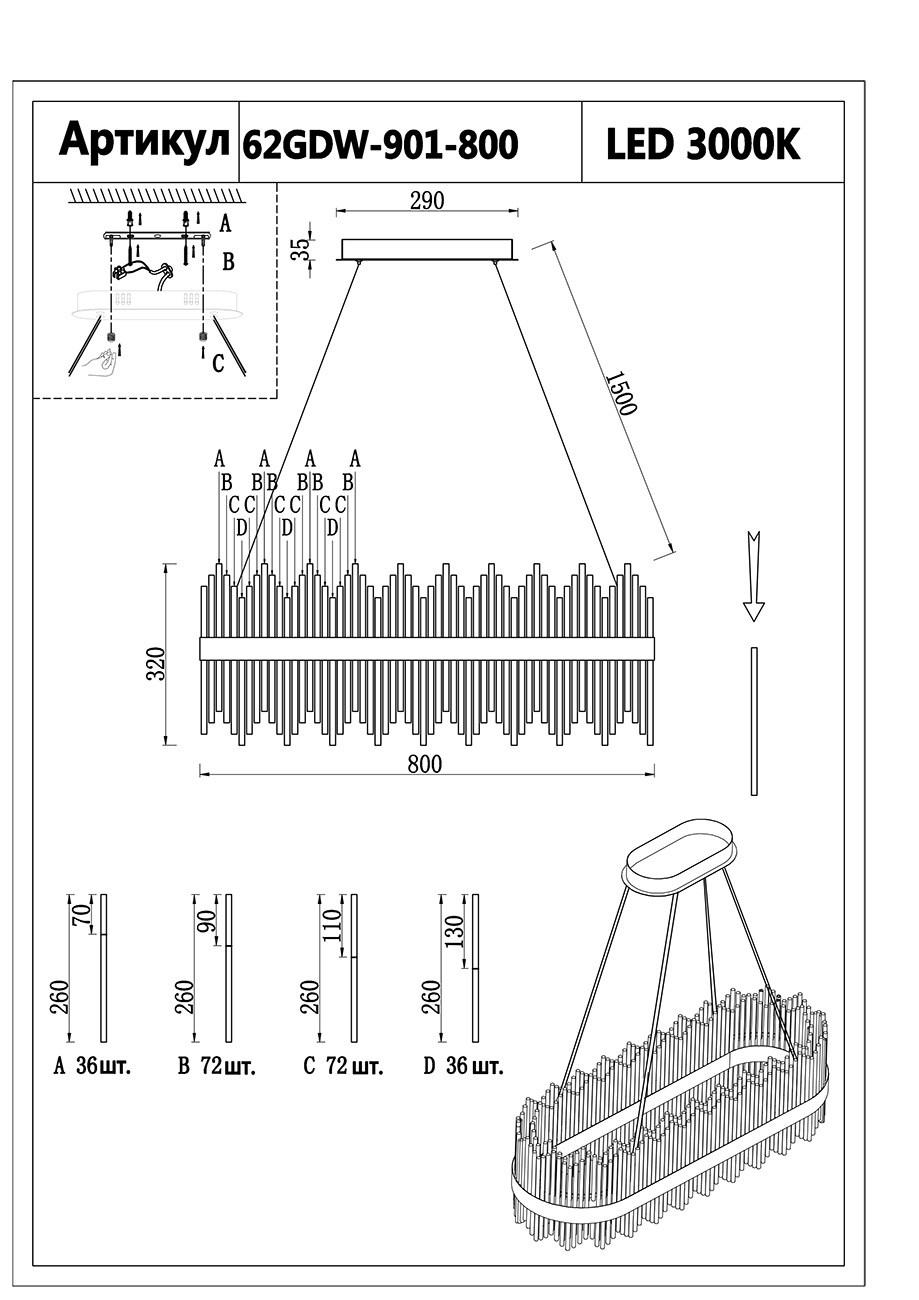 Данную модель 62GDW-901-800 с быстрой доставкой спешите купить по цене 44 200 ₽ в магазине 220svet.ru
