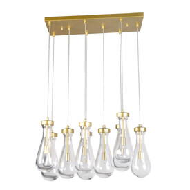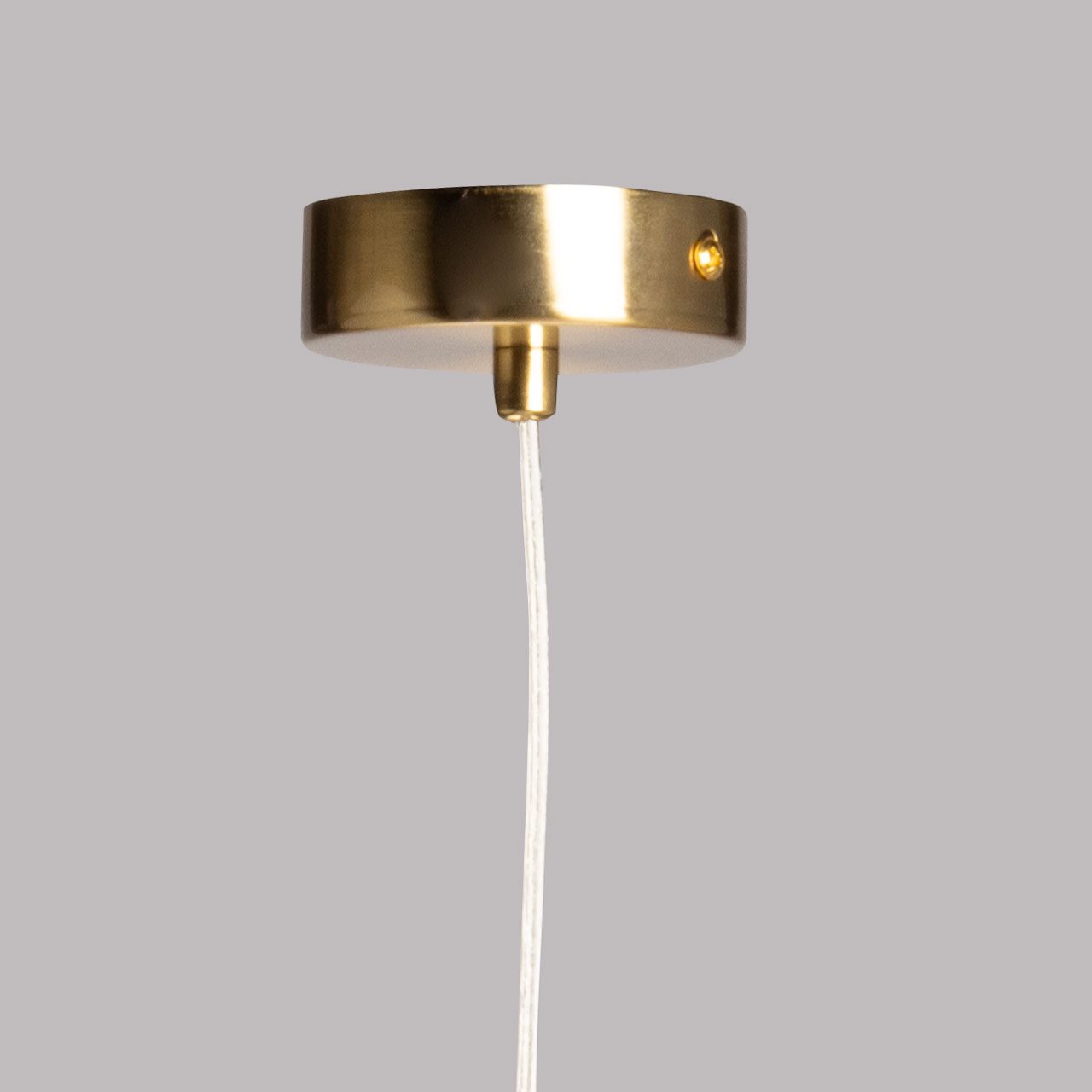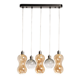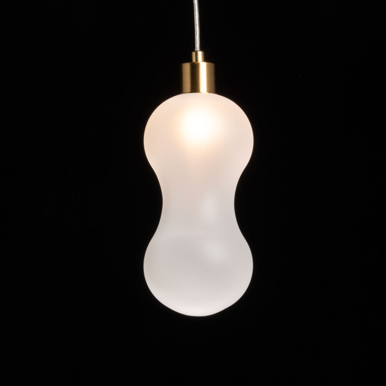 Металлическое основание подвесной люстры гальванизировано в цвет латуни. Стеклянный плафон выдувается в сложную форму и матирован изнутри.