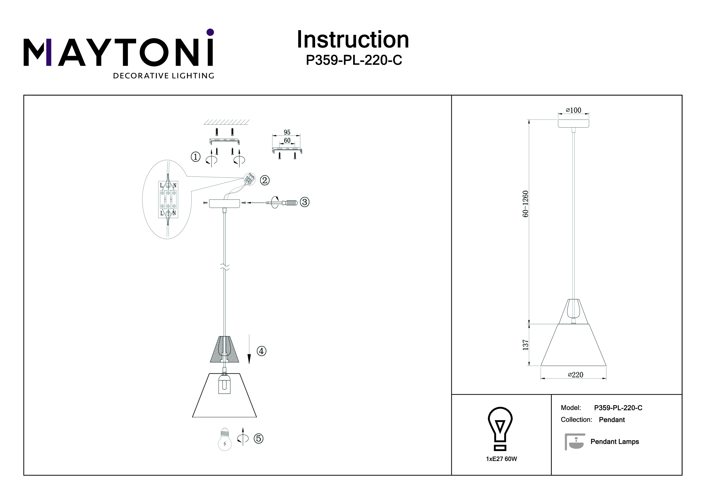 - Мощность лампы: 60 W