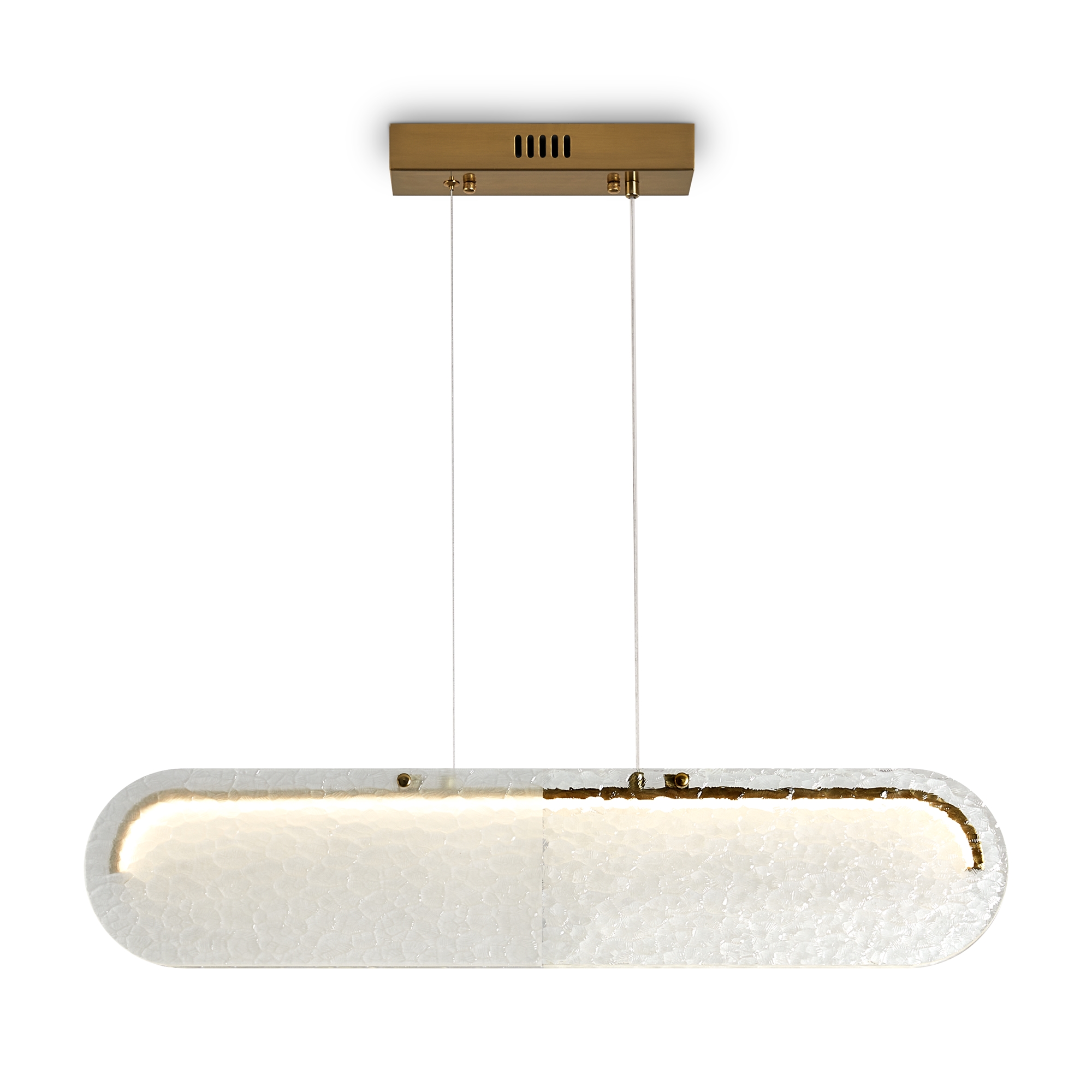 Стеклянные подвесные светильники Lunar с рельефным стеклом в двух цветовых вариантах: коньячном, белом матовым и прозрачным. Две формы плафонов: горизонтальный вытянутый и круглый, напоминающий очертания луны. Арматура — металл латунного цвета. Источник света - LED 3000 K. Дизайн сочетает современные формы с традиционными материалами, создавая эффектное освещение. Рельефное стекло добавляет интересную игру света и тени.