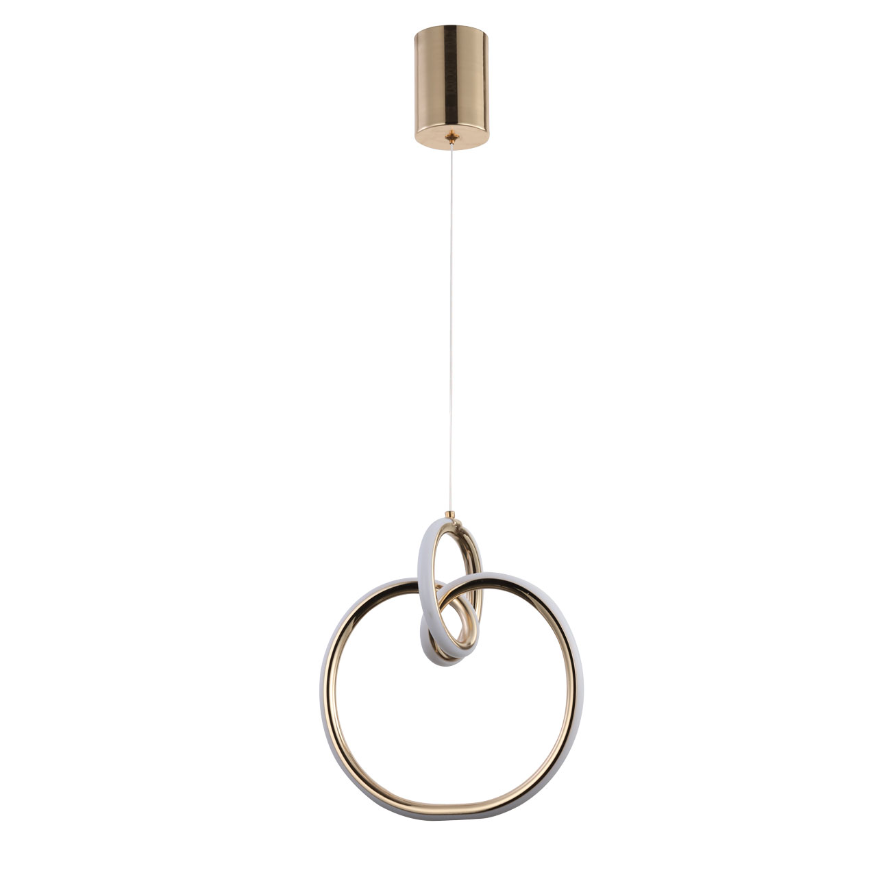 Металлическое основание подвеса гальванизировано в цвет французского золота. Корпус плафона выполнен из акрила и гальванизирован в цвет основания. Светодиодные источники света закрыты белым матовым силиконом.