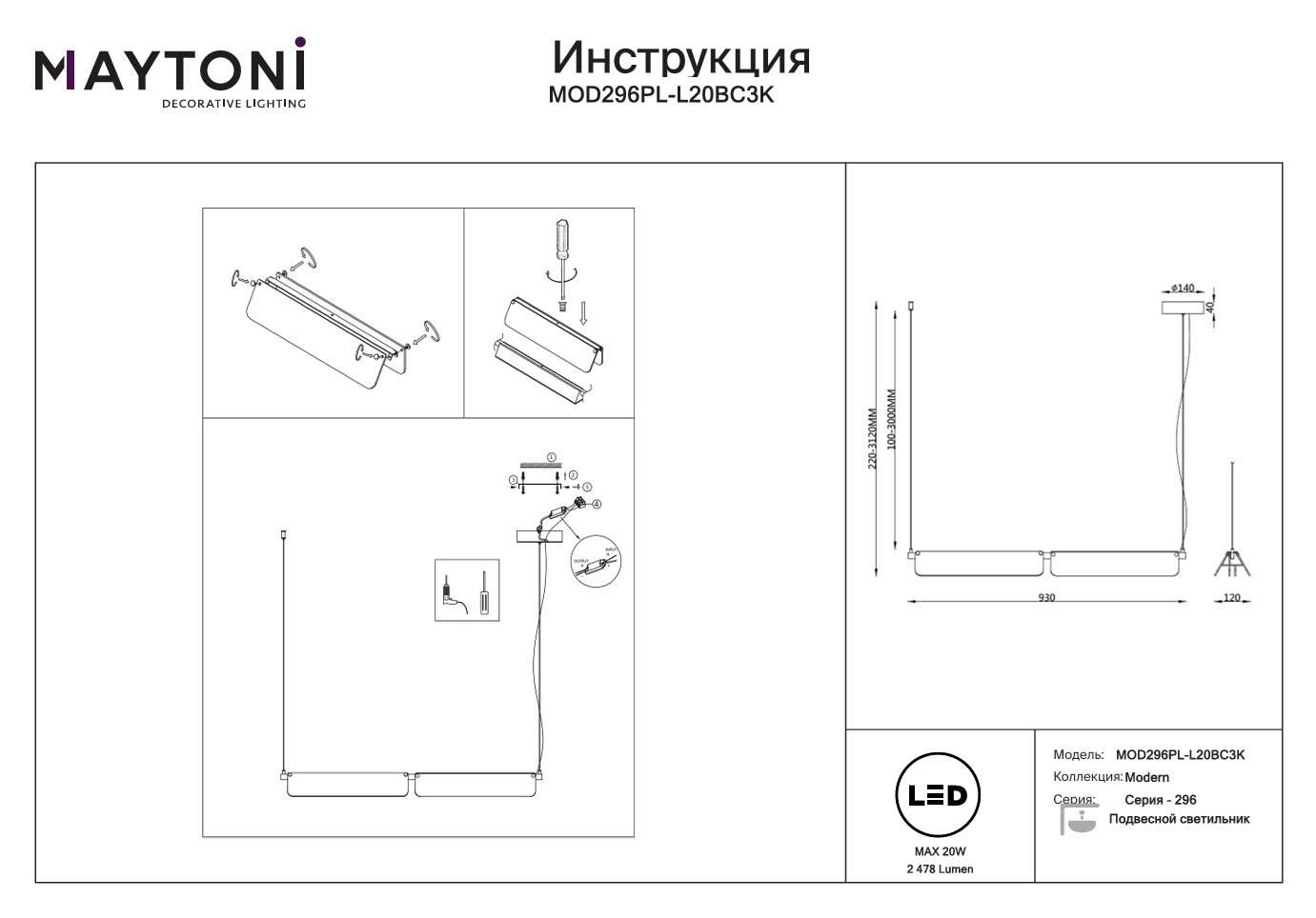 Данную модель MOD296PL-L20BC3K с быстрой доставкой спешите купить по цене 33 990 ₽ в магазине 220svet.ru