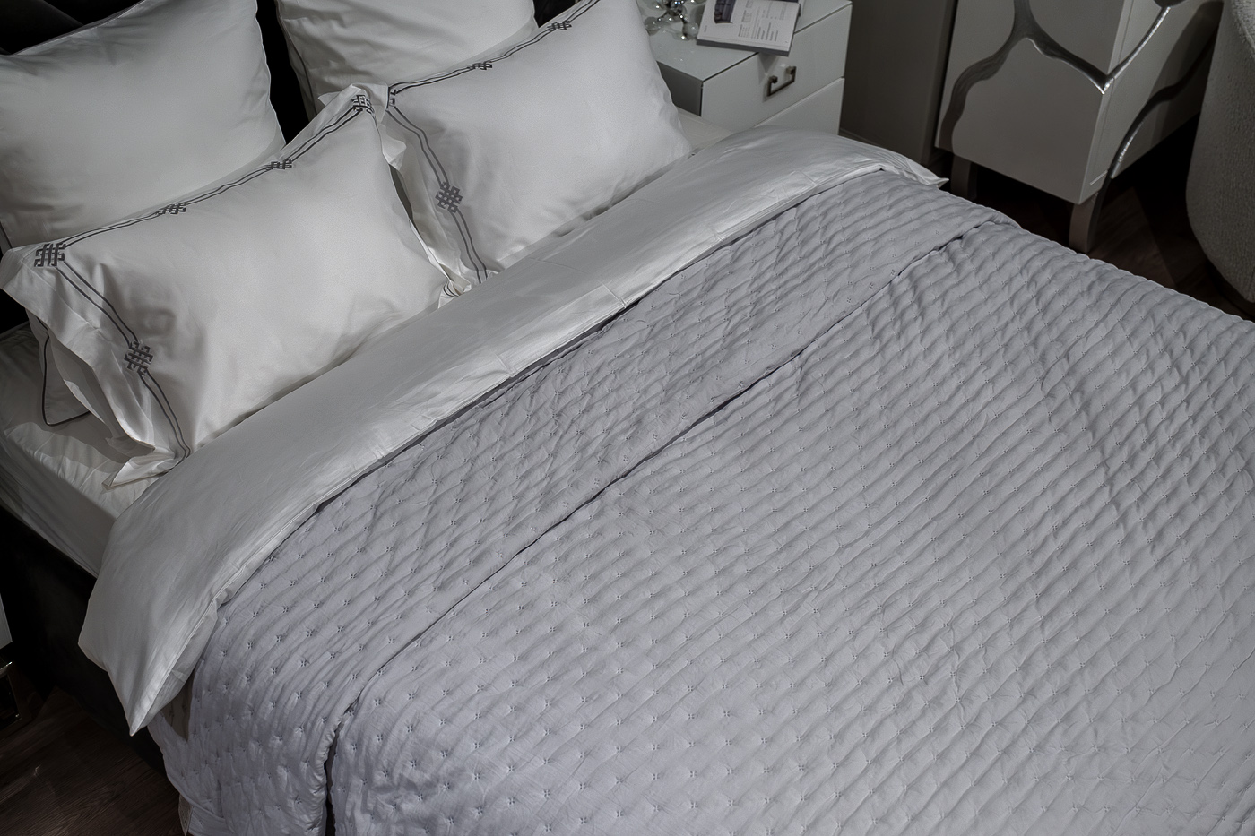 Стеганое покрывало Астро- стильное и комфортное покрывало в спокойном, нейтральном сером цвете, которое добавит уюта любому пространству. В составе покрывала мягкая и нежная микрофибра( 100% полиэстер) с внешней и внутренней стороны для комфортного контакта с кожей, гипоаллергенное полиэфирное волокно внутри. Покрывало прекрасно держит форму, не деформируясь и не теряя цвет со временем эксплуатации. Классический размерный ряд (180*230 и 240*260) позволяет комфортно использовать покрывала и создавать красивые застилы. Аккуратный узкий кант в цвет завершает дизайн, при этом не мешая драпировке покрывал. Инструкции по уходу: Деликатная стирка при температуре 30 С,не отбеливать, гладить запрещено, сушить на горизонтальной поверхности, сухая чистка запрещена.