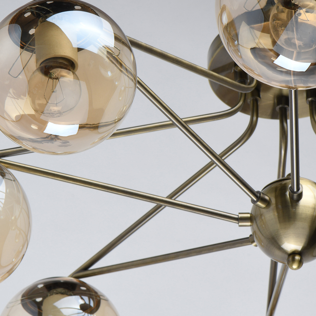Оригинальная потолочная люстра De City Оливия 306013608 сочетает в себе черты сразу нескольких стилевых решений. Лакированное и декорированное патиной основание цвета бронзы напоминает о стимпанке. Эстетику эпохи паровых машин усиливает сферическая центральная часть, выполняющая декоративную функцию. Прозрачные плафоны-сферы из стекла, тонированного в коньячный оттенок, создают индустриальный эффект. Это позволяет вписать люстру в современный интерьер с «промышленными» нотками, например, в стили лофт или фьюжн.