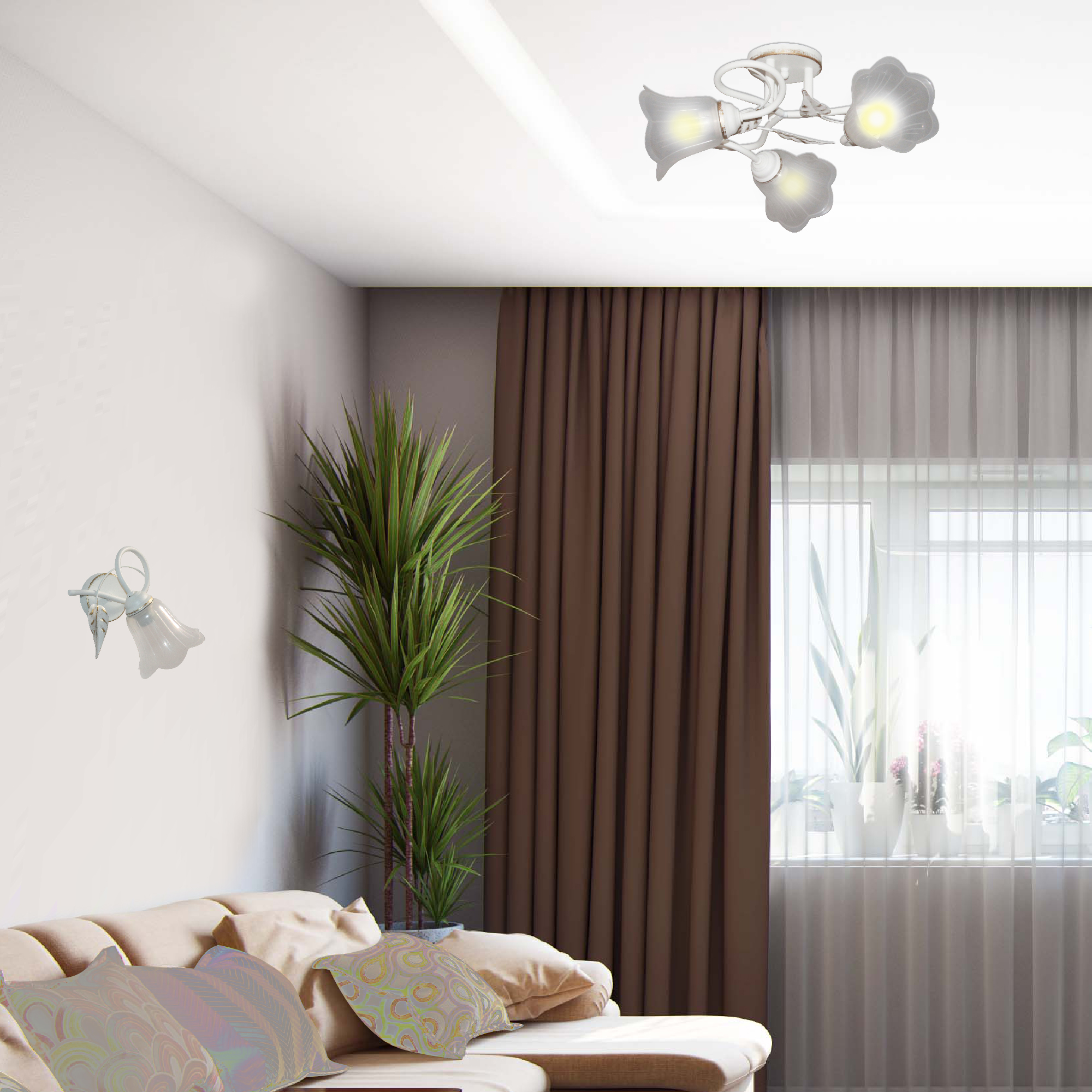 - Декор плафона: Цветы