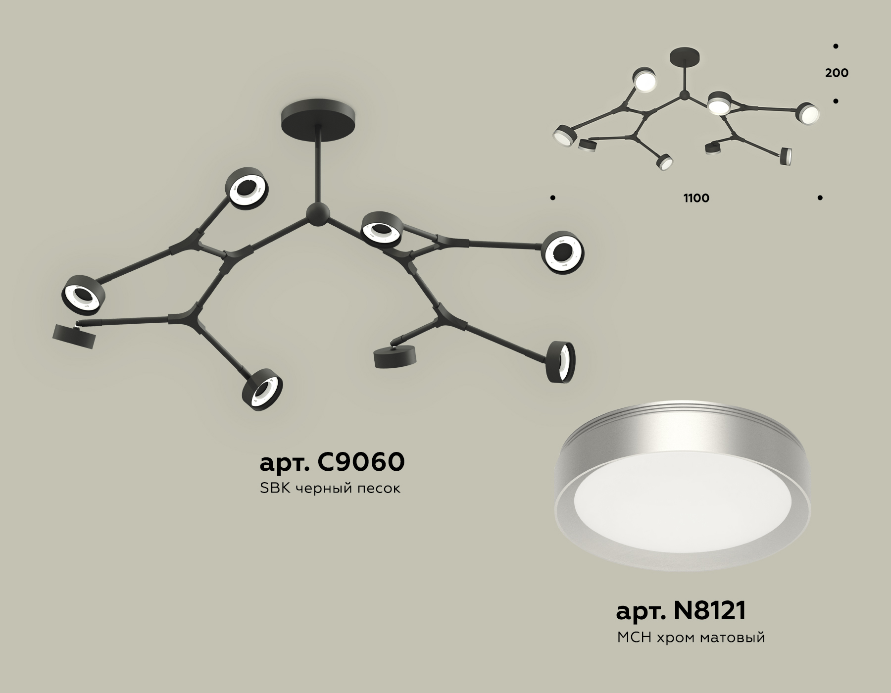 - Цвет плафонов: Хром