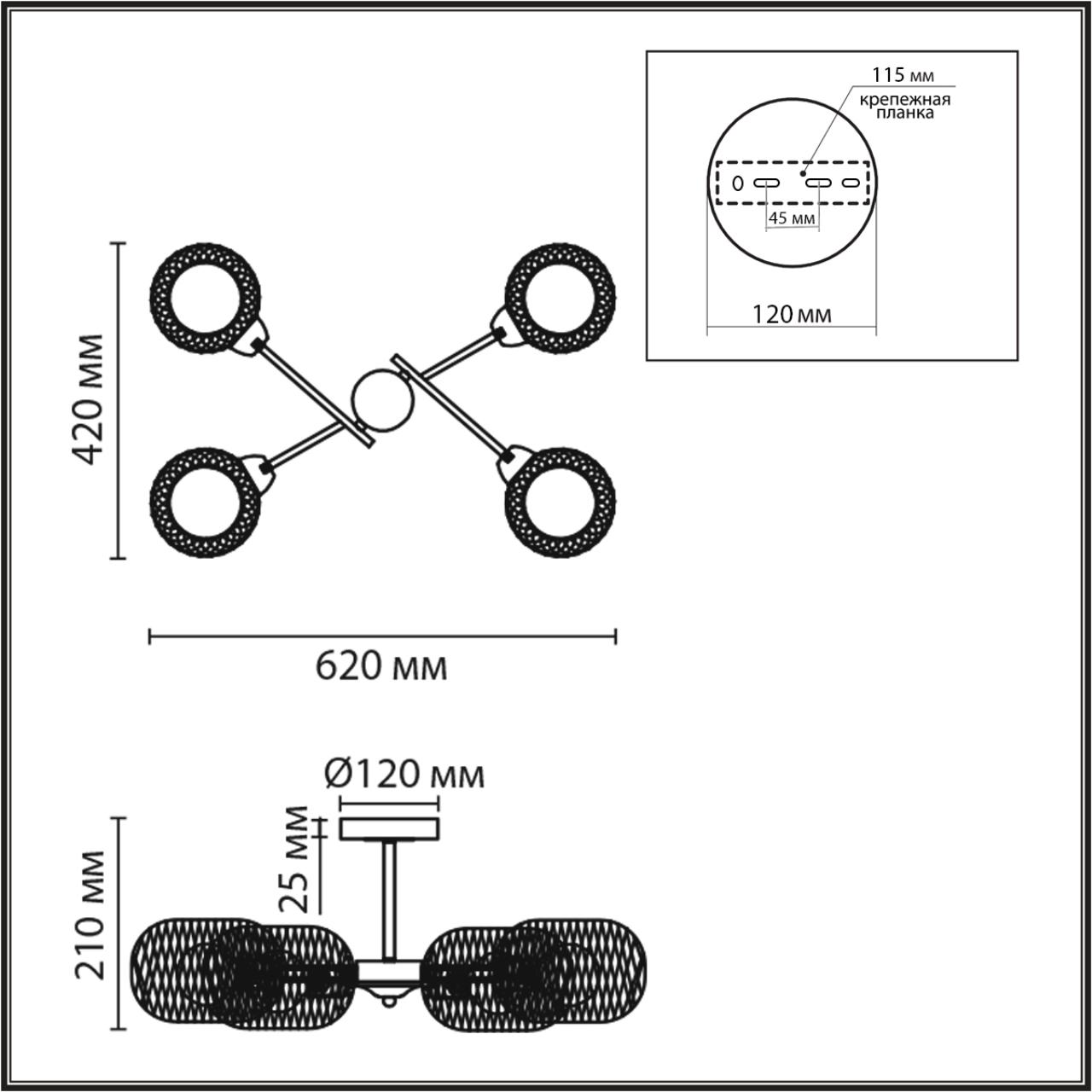 - Цвет плафонов: Черный