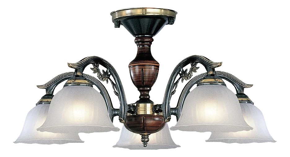 Потолочная люстра Reccagni Angelo PL 2700/5 Итальянского производсва – уникальное сочетание высокого качества и удивительных фактур. Этот светильник Классического стиля хорошо подойдет Для гостиной и придаст помещению мягкий и приятный свет. Плафоны белые из стекла. Арматура бронза из металла. Кол-во ламп - 5шт. Общая мощность 300W