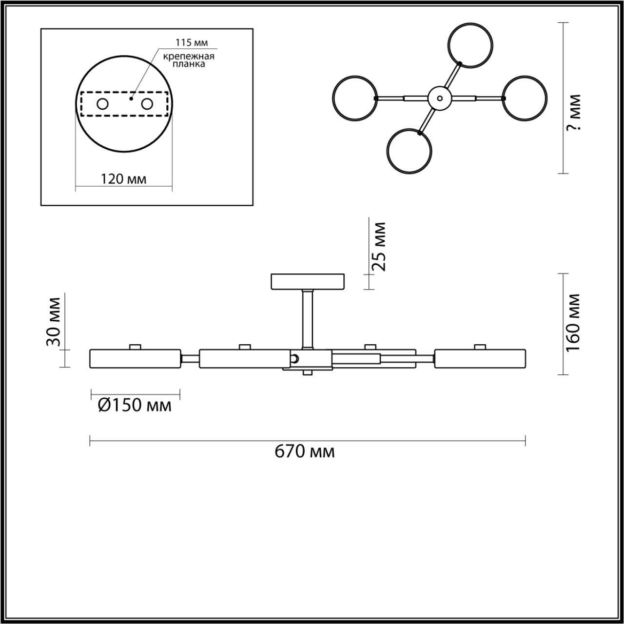 - Диаметр плафона (абажура): 150