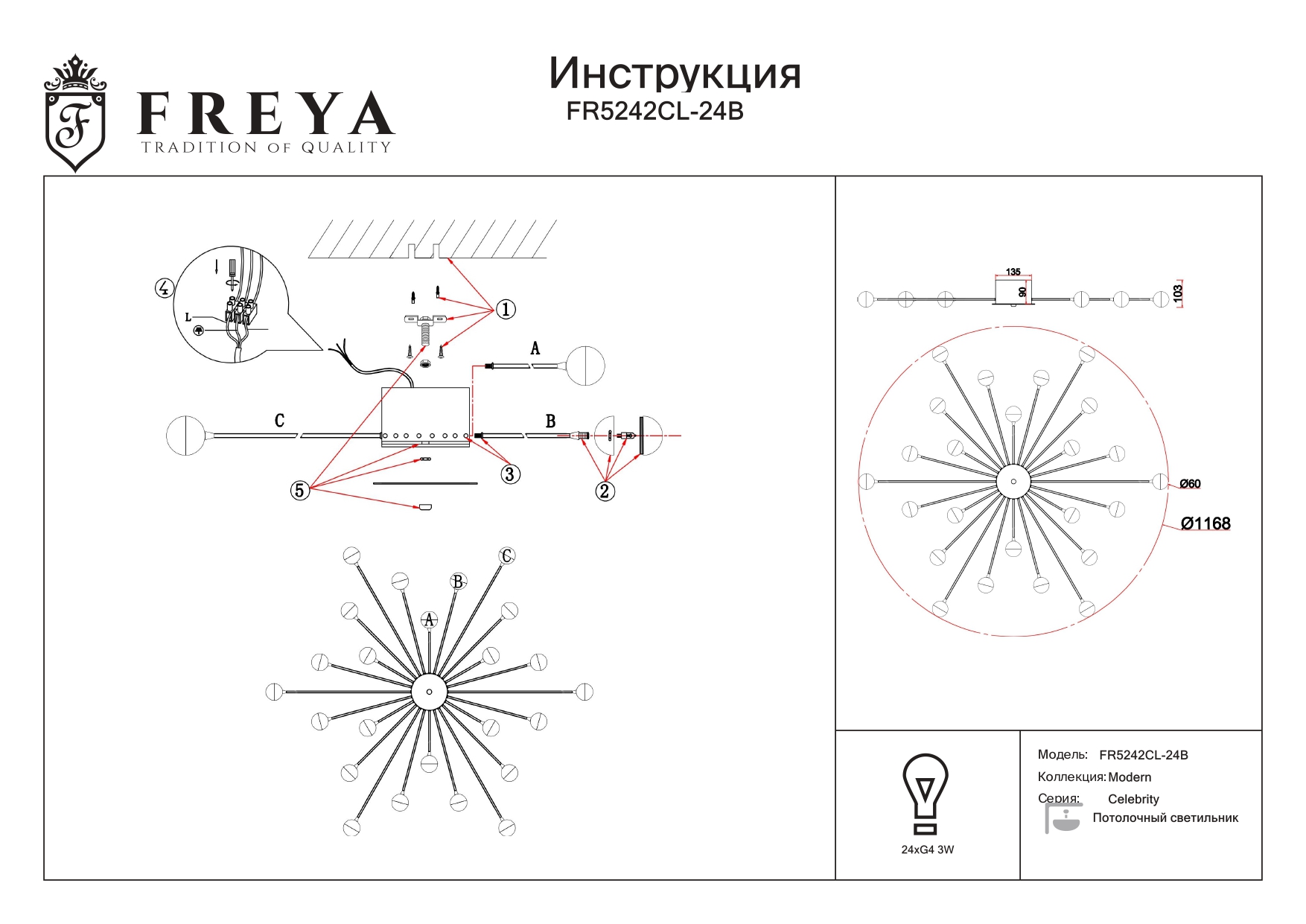 Данную модель FR5242CL-24B с быстрой доставкой спешите купить по цене 23 620 ₽ в магазине 220svet.ru
