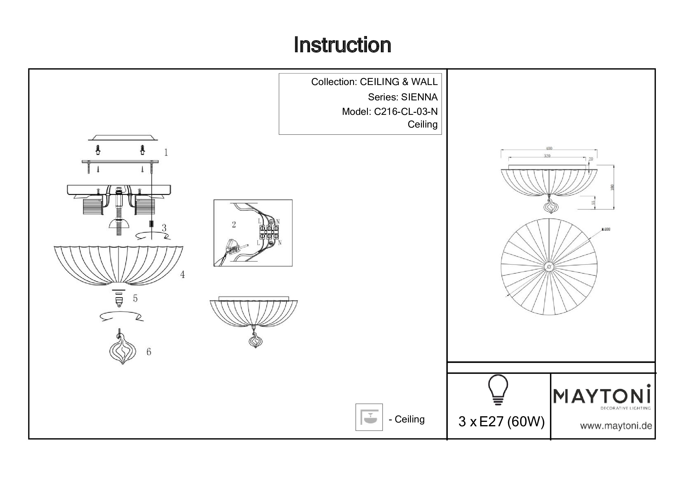 Купить "Потолочный светильник Maytoni Sienna C216-CL-03-N"