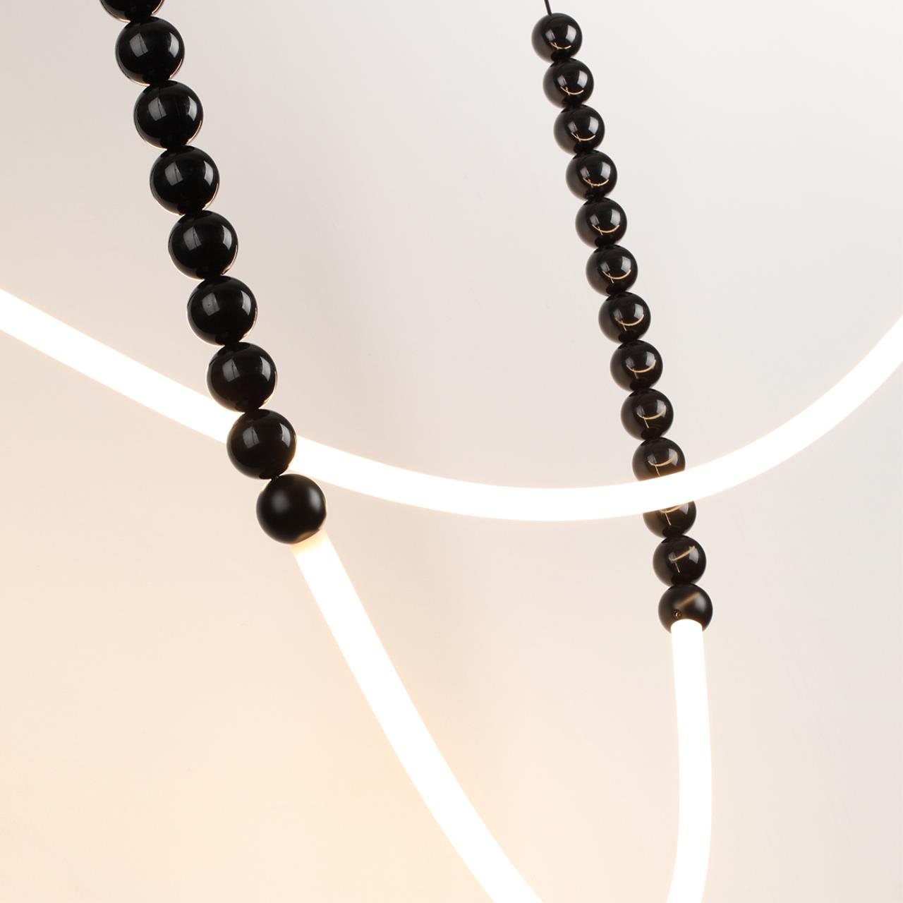 Monella — оригинальная форма большой серии светильников в легком игривом дизайне с использованием черных полированных шариков из акрила. В светильнике используются оргинальные фиксаторы к потолоку в виде россыпи маленьких металлических шариков, которые можно расположить на любом удалении от центра светильника и, таким образом, создать свою форму.