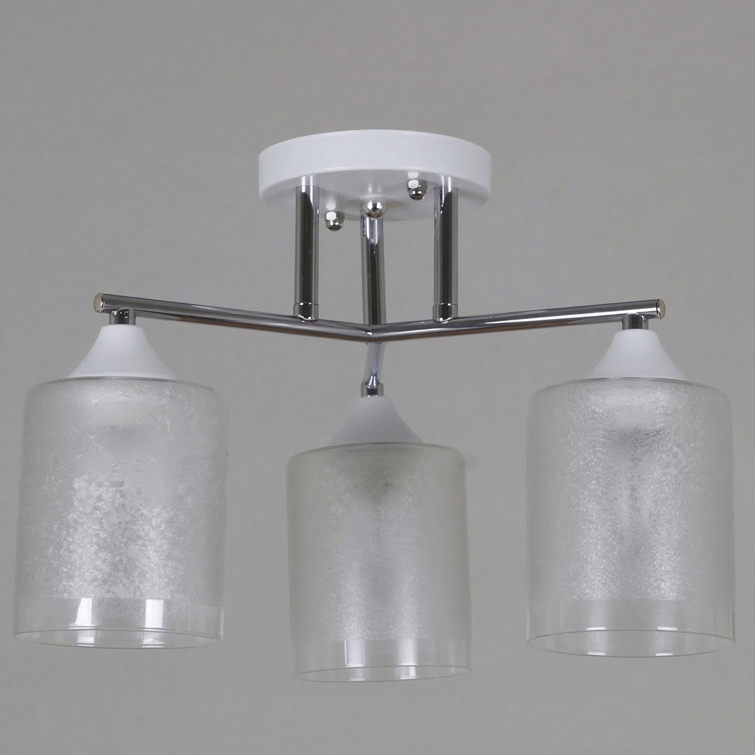 - Цвет плафонов: Белый, Прозрачный, Хром