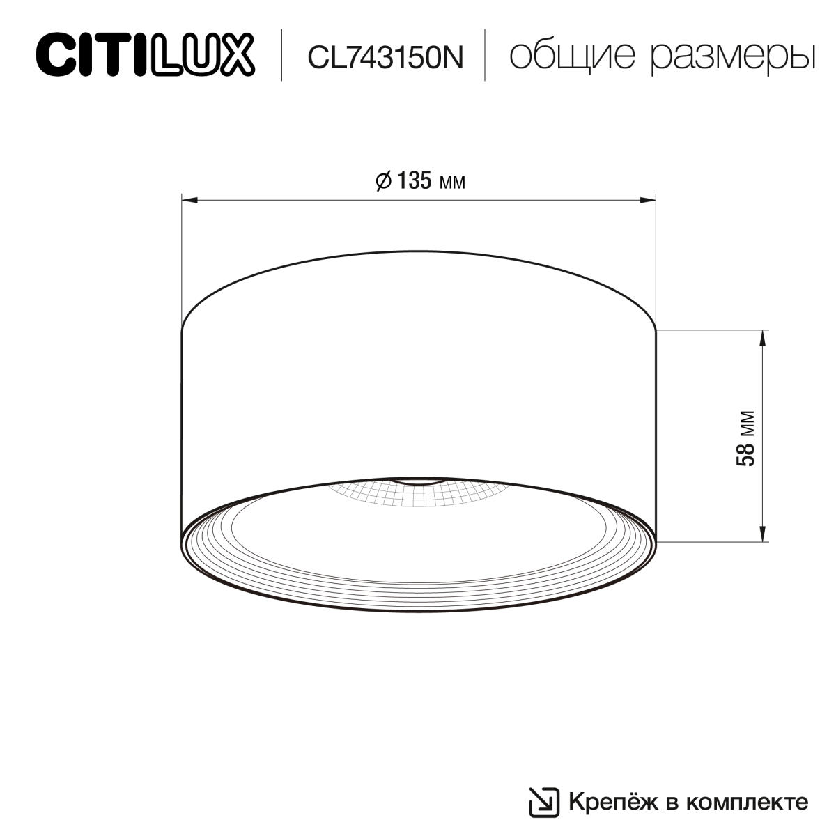Мощность изделия 15Вт, цветовая температура - 4000К (нейтральный белый свет). Свет безопасный для глаз, без мерцания и пульсаций. Модель круглой формы, диаметр - 135мм, высота - 58мм, осветить площадь до 5м². Подходит для всех типов потолков, включая натяжные, благодаря удобной монтажной платформе.
